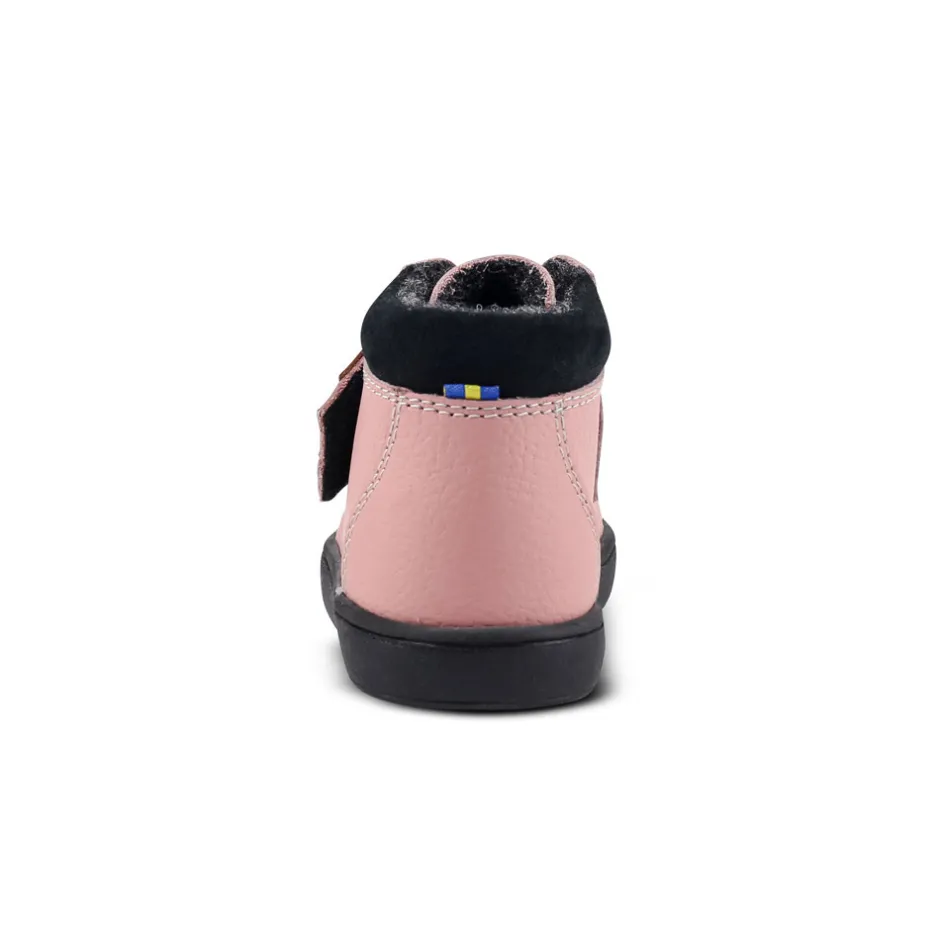 Kavat vinterstøvlerne er designet med et mellemhøjt skaft, der går op over anklerne og giver god støtte og beskyttelse mod kulde og sne. Støvlerne lukkes nemt og sikkert med en bred velcrorem over vristen, hvilket gør dem lette at tage af og på – også for de mindste.