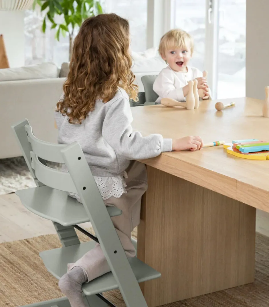 Klik det nemt på din Tripp Trapp højstol og barnet kan sidde trygt og være med ved spisebordet