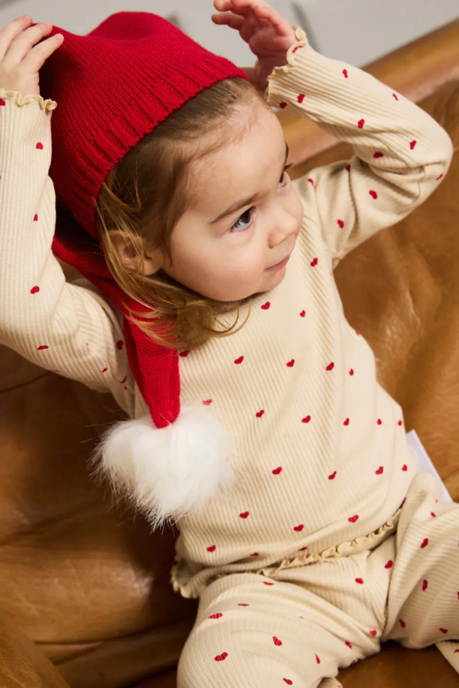 Denne nissehue fra THE NEW Siblings er det perfekte tilbehør til hyggelige juleøjeblikke og festlige traditioner. Den er strikket i et blødt og strækbart stof for en behagelig pasform og afsluttet med en klassisk hvid pom-pom på toppen. Den lange, spidse form gør den ideel til julemorgen, feriefester eller familiebilleder.