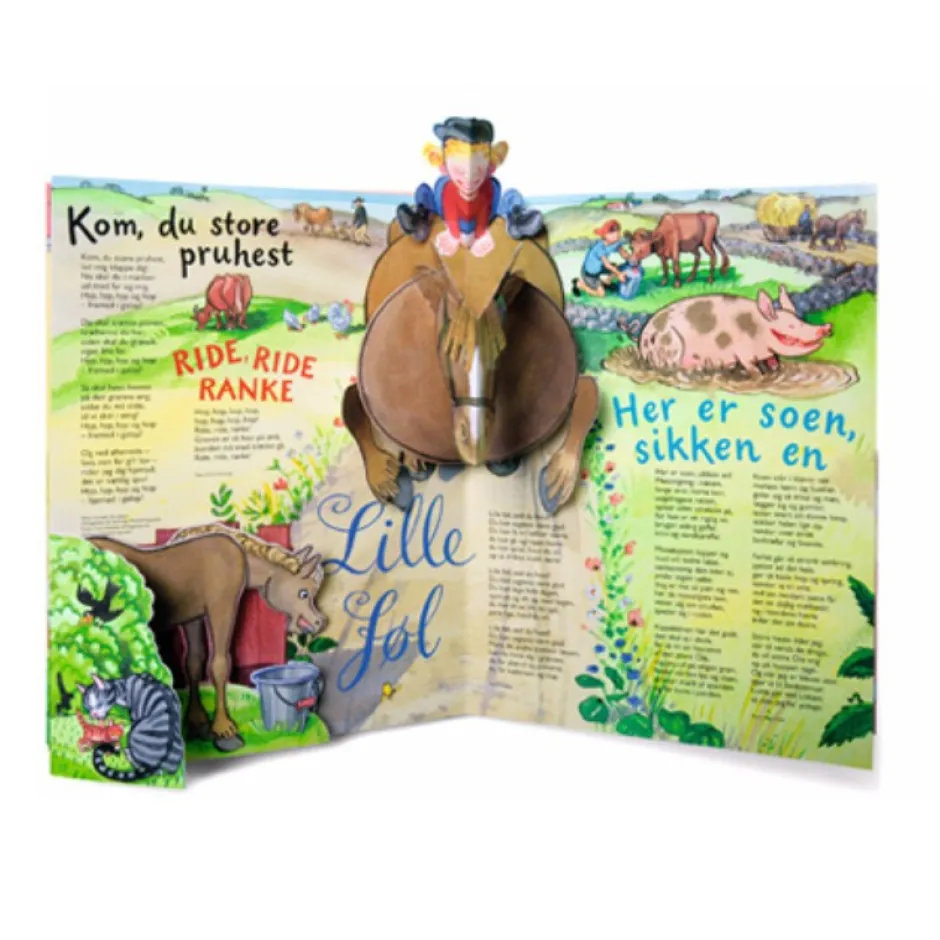 Jeg en gård mig bygge vil Stor, pragtfuld danskproduceret pop op-bog med nogle af de mest elskede og populære børnesange om tamdyr og vilddyr. Bente Bechs flotte og detaljerede tegninger illustrerer sangene på bedste vis sammen med de finurligt indbyggede effekter: Mærk for eksempel “Lille Peter Edderkops” plyssede krop, når han kravler op ad muren, se det overdådige kagebord til “Bamses fødselsdag”, eller oplev “Mariehønen Evigglad” gå tur på sit rabarberblad. Og tør nogen mon stikke fingrene i krokodillens gab, når den tager bad i badekarret? En oplevelsesbog, man aldrig får nok af. Også en perfekt barsels- eller dåbsgave.