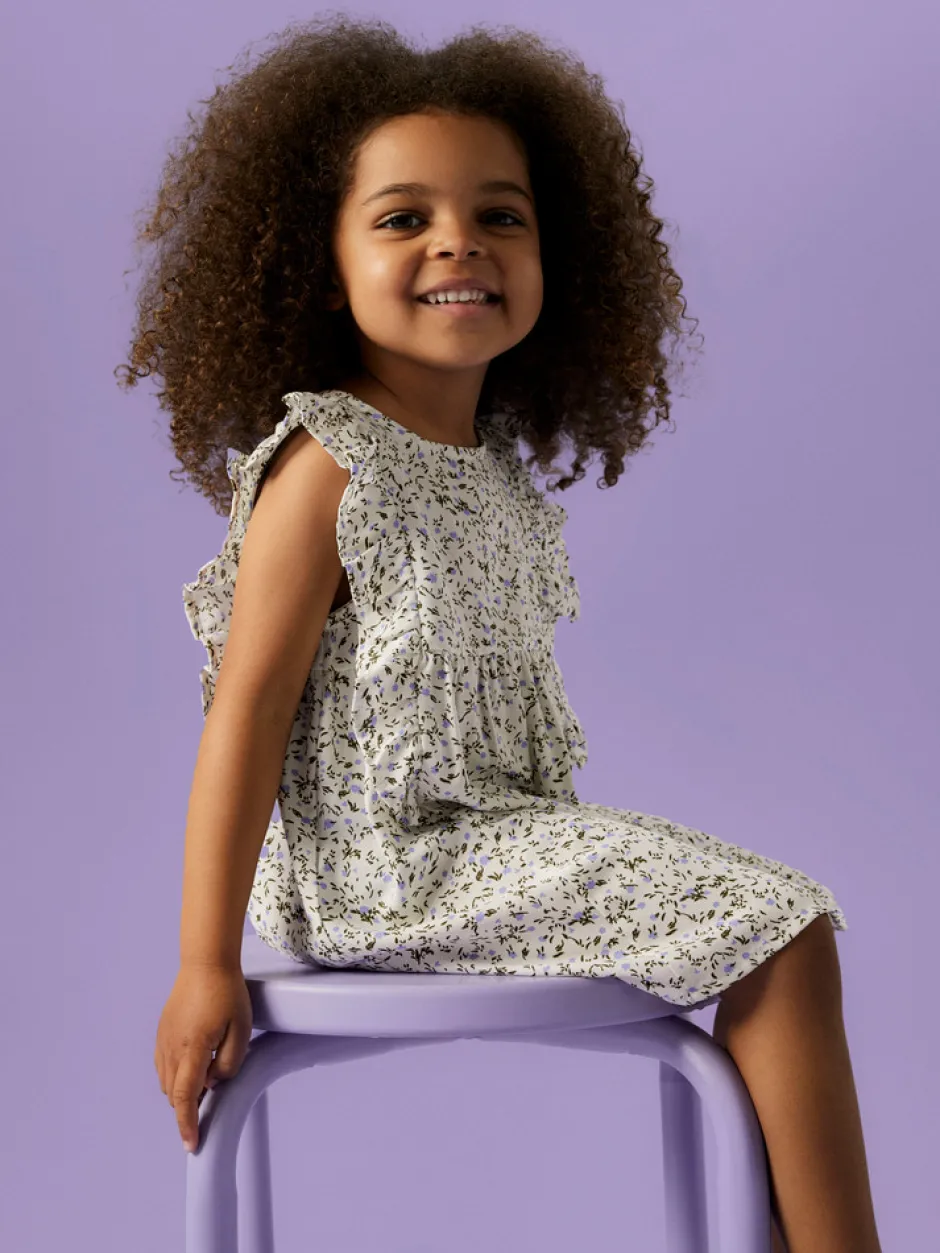 Frisk dit barns garderobe op med fine og stilfulde kjoler – ideelle til både hverdag og fest, uanset årstid. Det vævede stof har en elegant krydsstruktur og en let tekstur, som giver et klassisk og velplejet udtryk.