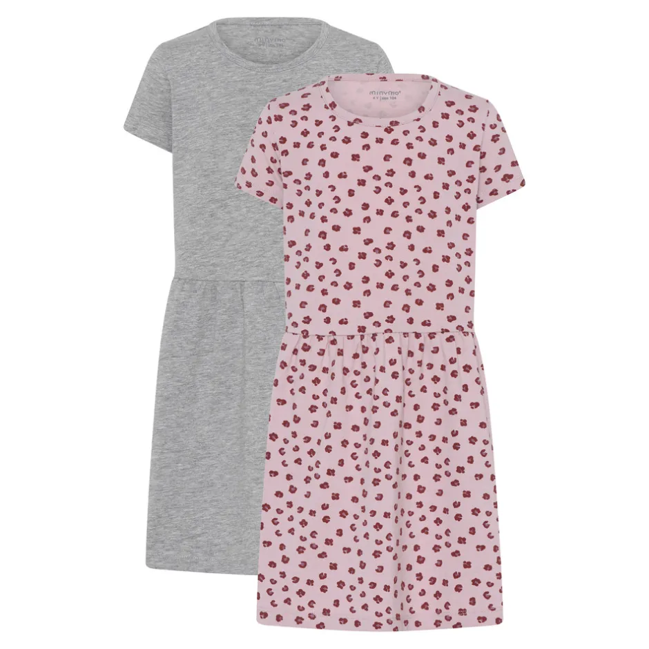 Minymo Kjole ss (2-pak) er et skønt valg til de små, der elsker komfort og bevægelsesfrihed. Kjolerne er lavet i blød og åndbar bomuld, som føles behagelig mod huden og er ideel til både leg og afslapning. Med korte ærmer og rund hals får barnet en klassisk og tidløs stil, der passer til mange lejligheder. Pakken indeholder to kjoler med forskellige farver og prints, så der er mulighed for at variere garderoben. Kjolerne har en let og rummelig pasform, der gør dem nemme at tage af og på, og de kan nemt kombineres med leggings eller strømpebukser på køligere dage.