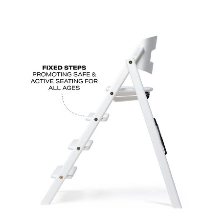 Kaos højstol: En smuk tilføjelse rundt om spiseborderet. Dens foldbare design gør den til en fantastisk pladsbesparende højstol, der også er perfekt lige til at tage med sig. De faste stigetrin er unikke og gør det nemt for barnet at klatre op og ned af KAOS Klapp højstolen på egen hånd. Barnet får en ergonomisk og aktiv siddeplads og hviler benene naturligt ved de forskellige trin, når de vokser. Bare fold stolen ud, klik sædet i låseposition, og den er klar til brug.