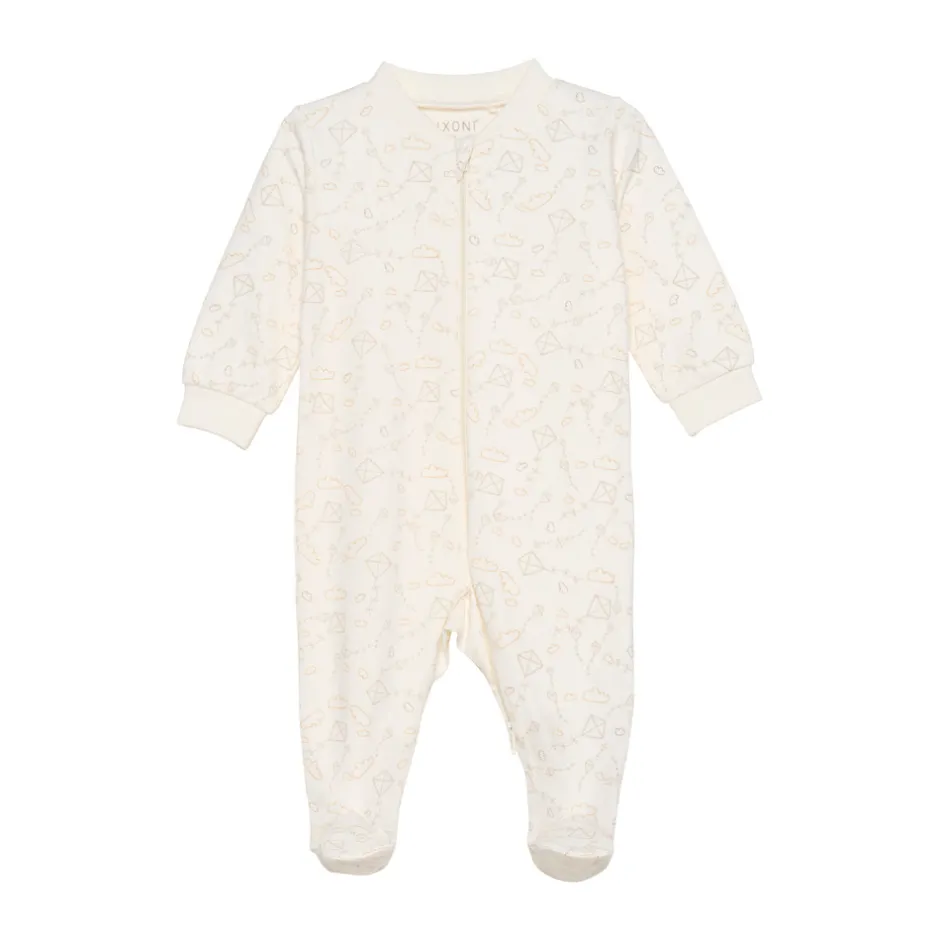 Natdragt fra FIXONI med påsyede fødder. Natdragten lukkes med lynlås foran fra hals til ankler. Dragten er lavet i bomuld med all-over-print. Certificeret i hht. STANDARD 100 by OEKO-TEX® cert. nr. SH020 156011 TESTEX, tiltro til tekstiler