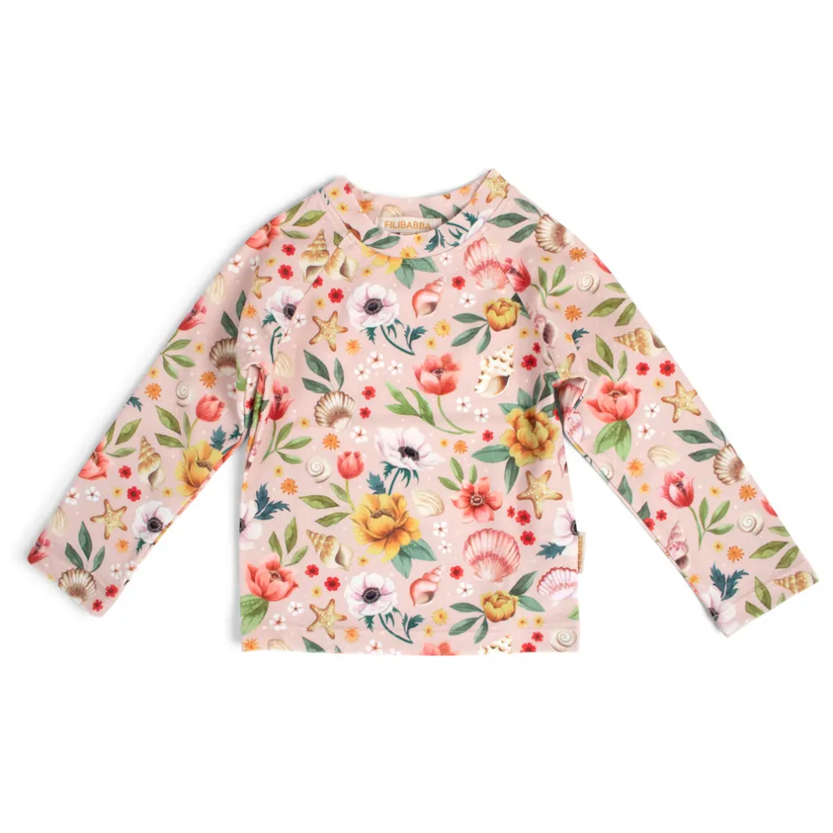Bemærk hvordan “Ocean Blossom”-printet fanger de skatte, som børn elsker at samle og tage med hjem. Hvert blomsterblad og hver lille detalje er håndtegnet med bløde penselstrøg i akvarel, hvilket forvandler hvert blik til en fortryllende opdagelsesrejse.