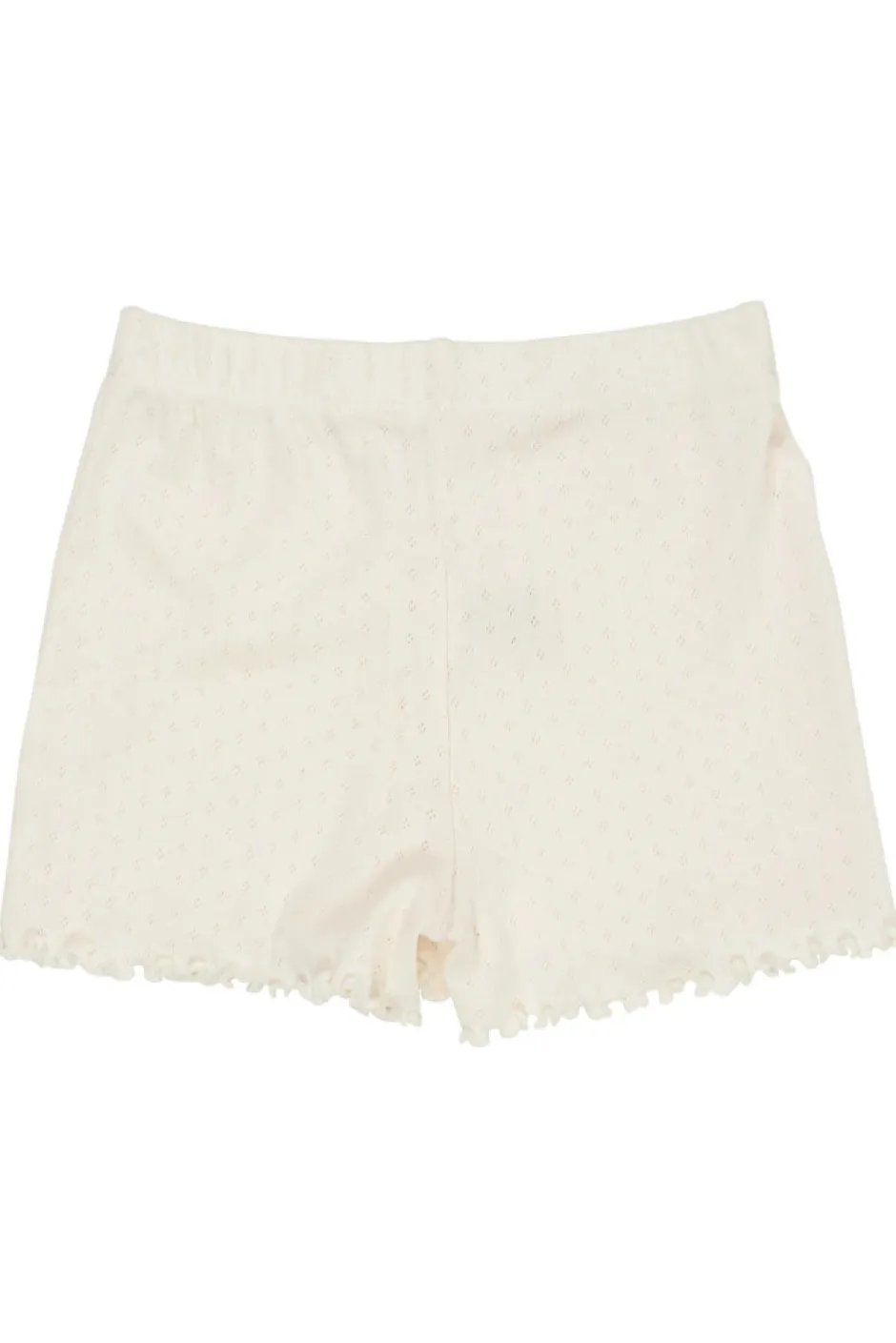 Pointelle-shortsene er den perfekte kombination af komfort og stil til varmere dage. Disse shorts er lavet af blødt, åndbart stof med et smukt pointelle-strikket design og giver en let, luftig følelse, der er perfekt til leg, udendørs eventyr eller afslapning derhjemme. Den elastiske linning sikrer en sikker pasform, mens det afslappede snit giver mulighed for nem bevægelse. Disse shorts er enkle, men stilfulde, og de kan parres med en række toppe for et alsidigt og behageligt look, der er perfekt til sommer.
