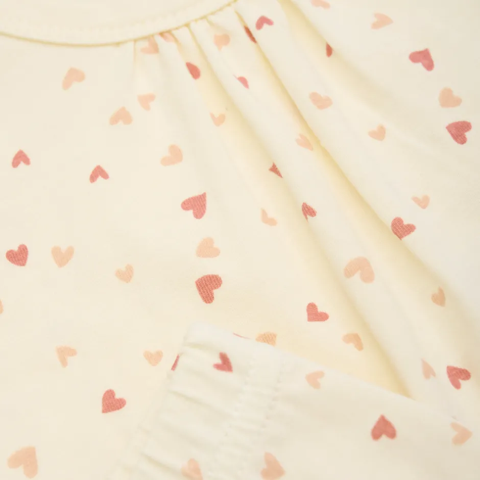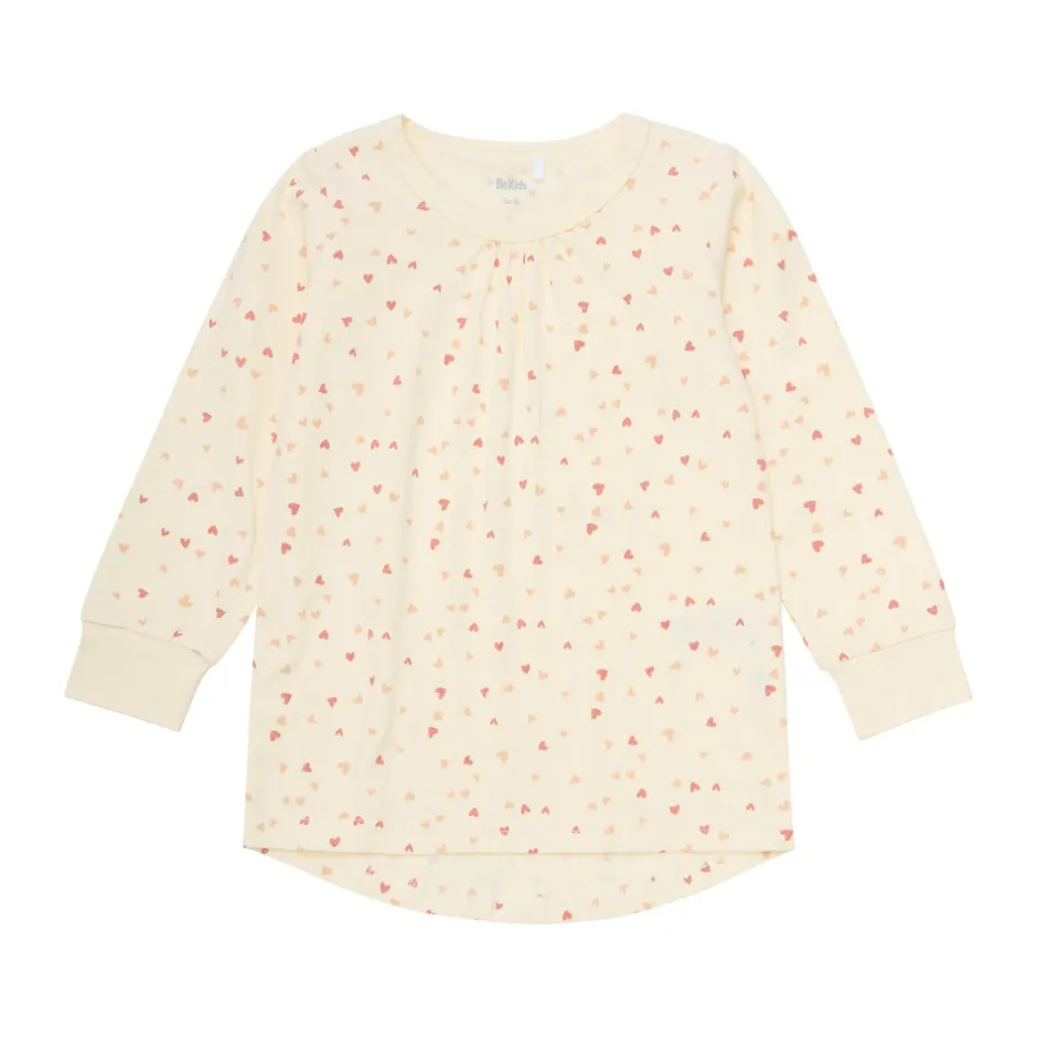 Denne skønne pyjamas fra BeKids er designet til at give dit barn en god nats søvn og masser af komfort. Sættet består af en langærmet bluse og matchende bukser, begge med et sødt og diskret print, der gør det ekstra hyggeligt at tage på. Ribkanter ved ærmer og ben sikrer, at pyjamasen sidder godt og holder på varmen hele natten. Materialet er blødt og åndbart, så dit barn kan sove trygt og behageligt. Perfekt til både kolde og lune nætter, og nem at vaske og holde pæn.