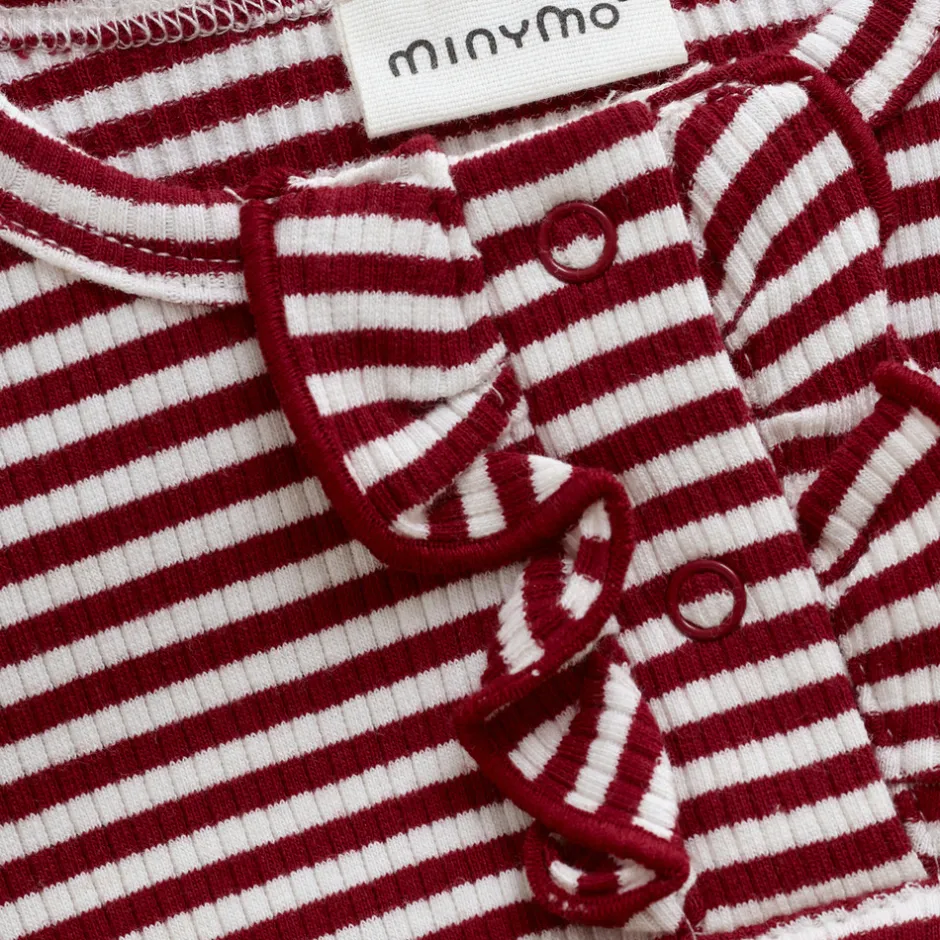Denne langærmede body er lavet i en blød og strækbar kvalitet, der giver dit barn optimal komfort og frihed til at bevæge sig. Bodyen har praktiske trykknapper forneden, som gør den nem at tage af og på, samt fine knapper ved halsudskæringen, der tilføjer en sød detalje.