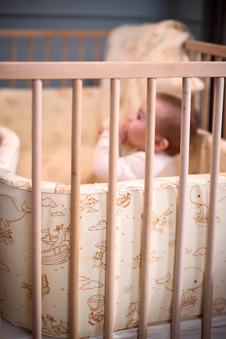 Forældre bruger meget tid på at hjælpe vores kære små med at falde i søvn, og findes der egentlig en bedre måde at slutte dagen på end at blive puttet ned i små glimt af glæde med et kys? Sengerand er designet til at skabe en hyggelig stemning i enhver krybbe og tremmeseng. Hvis din seng er mindre, skal du blot lægge sengerandens ender over hinanden. Den 4 cm tykke polyesterskumkerne hjælper sengeranden med at stå oprejst, så du ikke skal fastgøre den til sengen med f.eks. bånd. Derudover sikrer den ekstra tykke kvalitet, at din baby ikke slår hovedet ind i sengens hårde tremmer. Den integrerede lynlåsfunktion hjælper dig med at tage betrækket af, så du kan vaske det efter behov. Husk at trække betrækket i form og putte det direkte på skumkernen efter i vask. Lad betrækket tørre på sengeranden for at mindske risikoen for, at det krymper.