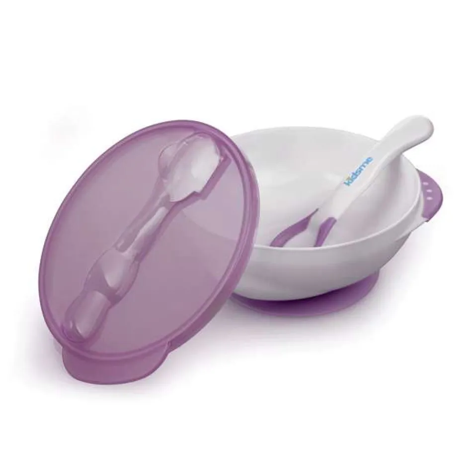 Dette sæt gør spisning let, både for forældre og børn uanset om I er hjemme eller ude. På undersiden af tallerkenen er der en sugekop, som gør at dit barn ikke ved et uheld kommer til at skubbe tallerkenen på gulvet. Udover tallerkenen er der også en temperaturske i dette sæt. Den virker ved at farven på skeen skifter når madens temperatur er over 40 grader. Derved sikrer du let, at dit barn ikke brænder sig. Skeen er designet, så den passer perfekt i den lille hånd. Skeen kan let placeres i det medfølgende låg og en klap klikkes på, så skeen ikke bliver beskidt under transport.