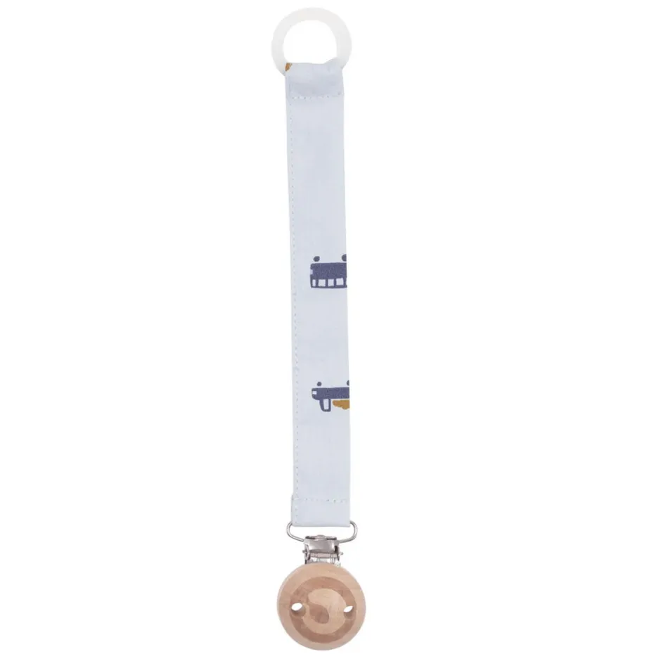 Sutte-snoren har en metalklips med træ ovenpå så man kan påsætte snoren på trøjen så sutten ikke bliver væk. På enden af sutte-snoren sidder der en gummiring som kan holde på flere forskellige slags sutter. Produktet er GOTS organic- certificeret, hvilket betyder at bomulden er certificeret økologisk, og at der i alle andre processer som farvning, strikning og syning er taget de strengeste hensyn til miljøet. GOTS er internationalt anerkendt som den førende standard for forarbejdning af tekstiler af økologisk bomuld. Derudover tages der også hensyn til arbejdsforholdene, hos dem der producerer tøjet. Økologisk bomuld 100%. (GOTS Organic Certified by Ecocert Greenlife Lic. No. 152033).