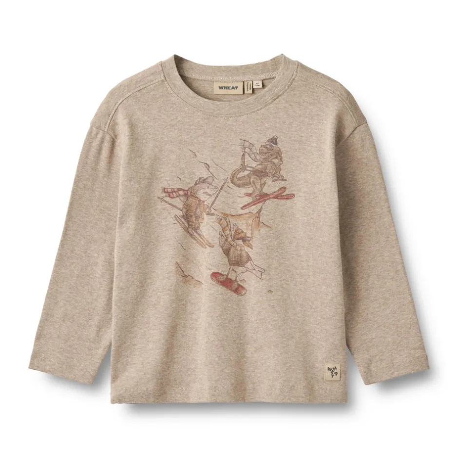 Wheat’s T-shirts er en sand essentiel i dit barns garderobe, da T-shirts er bløde og behagelige for dit barn at have på. T-shirten fås i smukke farver og håndtegnede prints, der er lavet af Wheat’s interne designteam. De kan nemt styles med et par bukser eller en nederdel, og med en strik ovenpå afhængigt af vejr og anledning. Den er også perfekt som et ekstra lag under en kjole eller overalls på koldere dage.