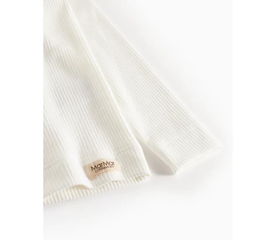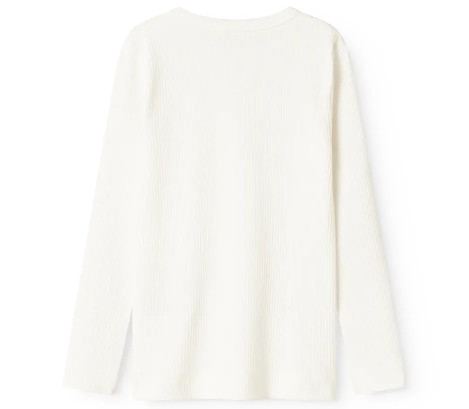 Denne enkle og alsidige langærmede T-shirt er fremstillet i ribstrikket modal med elastan, hvilket giver en strækbar og behagelig pasform. Den er blød mod huden og holder både form og farve – perfekt til hverdagsbrug.