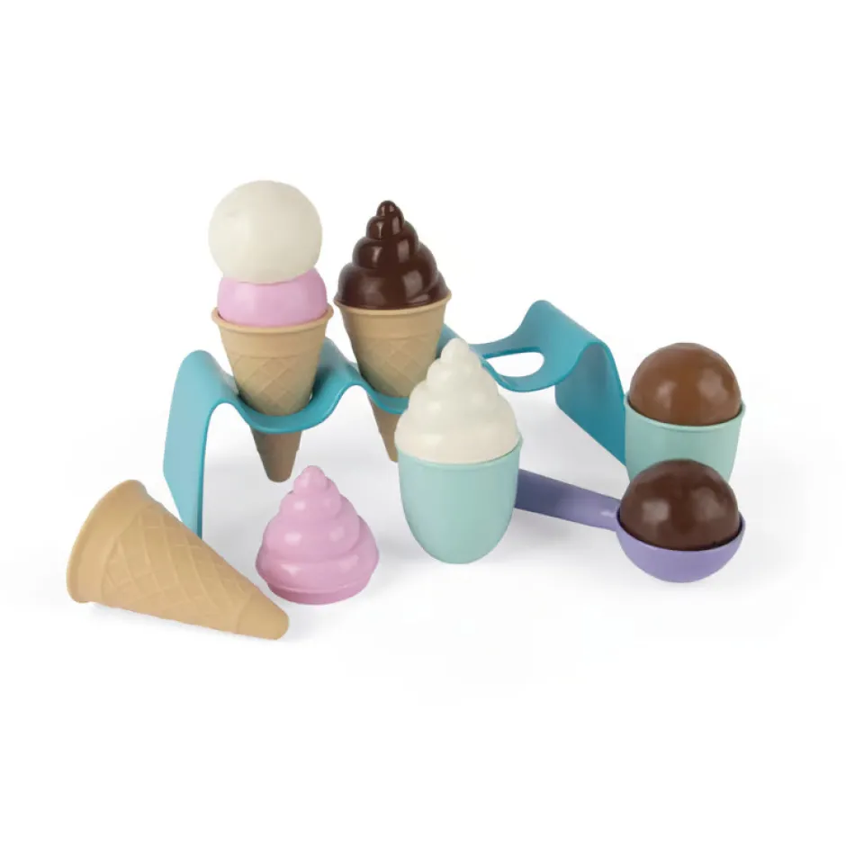 Thorbjørn sæt med isvafler og diverse toppings, som forestiller forskellige iskugler i forskellige smage. I sætter kommer der også en opsats, hvor børnene kan stille isvaflerne i ligesom i en rigtig isbutik.