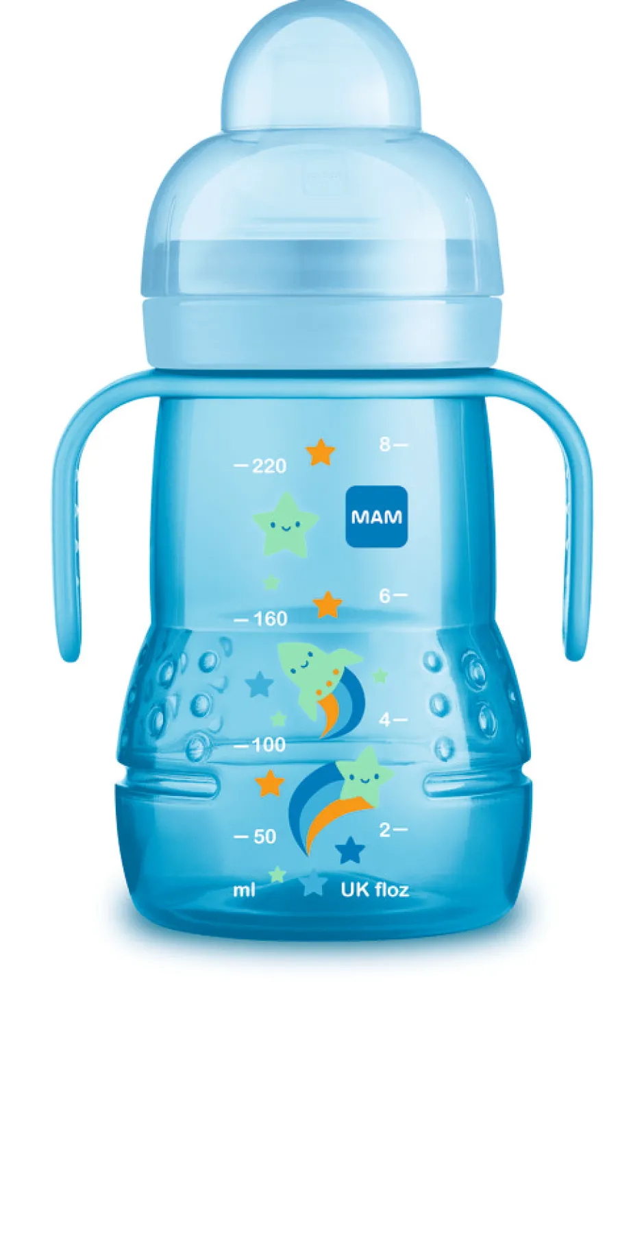 MAM Trainer er den perfekte kombination af funktionalitet og design. Spildsikker flaske med ekstra blød drikketud og gribevenlige håndtag. Den er nem at holde, og gør overgangen fra bryst eller flaske til kop nemmere. Den har et praktisk lækagesikkert låg der kan anvendes som måleske. Drikketuden Extra Soft Bottle Spout medfølger til Trainer.