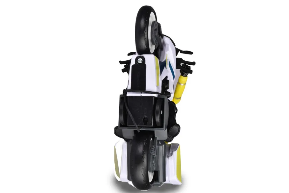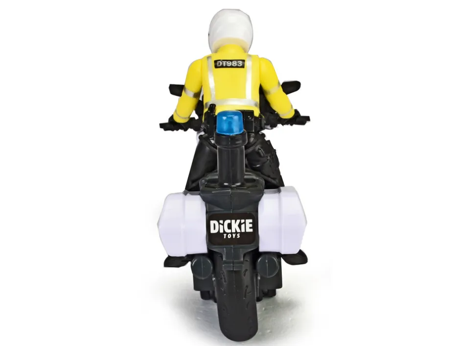 Dansk Yamaha politimotorcykel fra Dickie Toys med friktionsmotor, lys, lyd og løs figur. 17 cm. Fra 3 år.
