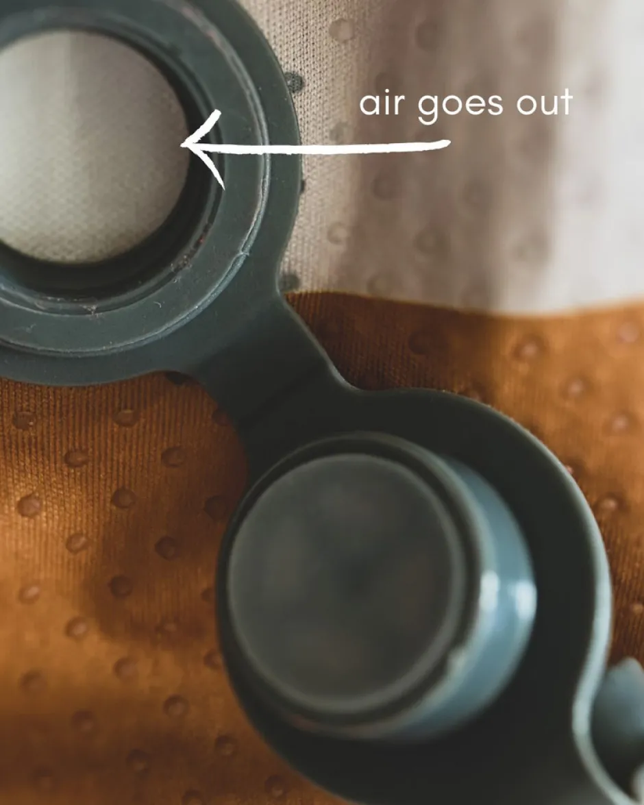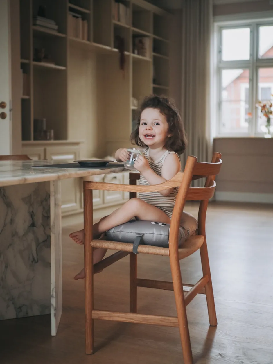 Oppustelig siddepude til barnet, der er for stort til højstolen og for lille til en spisestol.