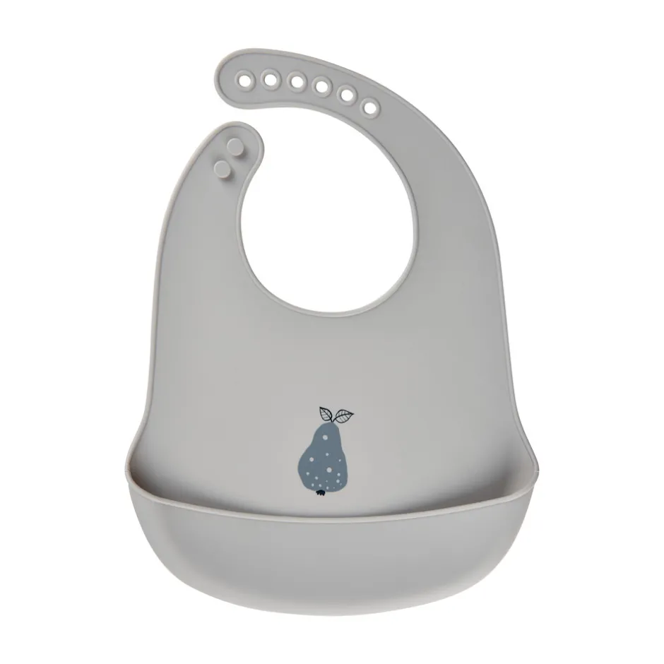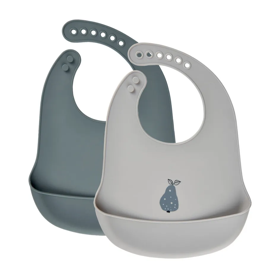 Spisesmæk i silikone. Praktisk hagesmæk der er blød og nem at bruge til baby og børn. Med praktisk opsamler der gør spisetiden nemmere.