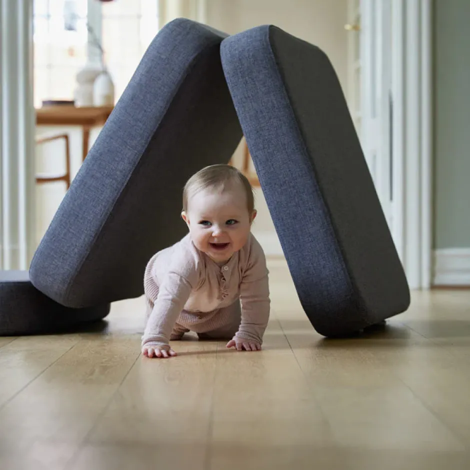Mål:Foldet som en sofa/loungemøbel: H: 36 x B: 70 x L: 70 cm.Foldet ud som en gæstemadras/tumlegulv: H: 12 x B: 70 x L: 210 cm.