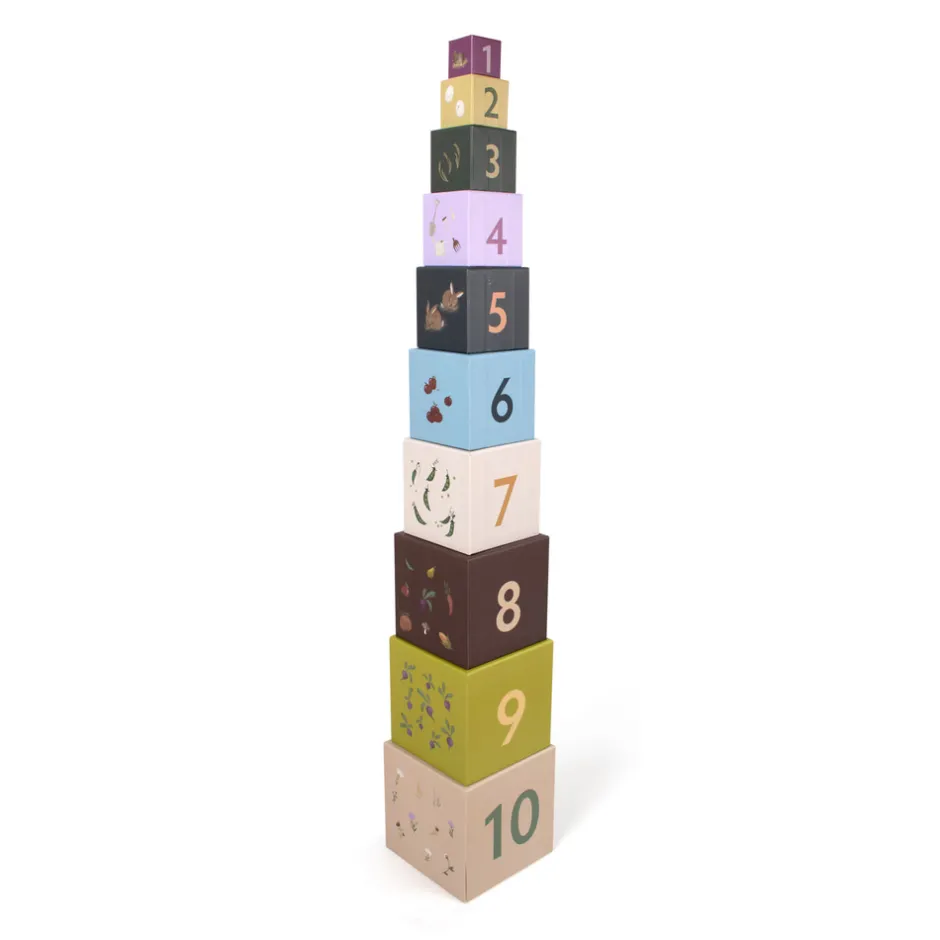 Med vores stableklodser lærer dit barn at tælle til ti og lærer bondegårdsdyrene at kende på samme tid! Stableklodserne styrker dit barns fin- og grovmotorik såvel som dets hånd-øje-koordination og problemløsningsevner. De farverige håndtegnede illustrationer vil helt sikkert skabe glæde og nysgerrighed omkring bondegården og naturen.