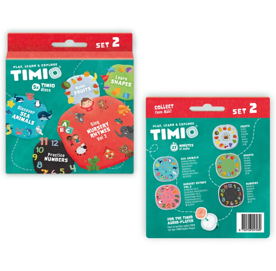 TIMIO Disc Set 2 – Tal / 96 Børnesange Vol. 2 / Havdyr / Former / Frugter
