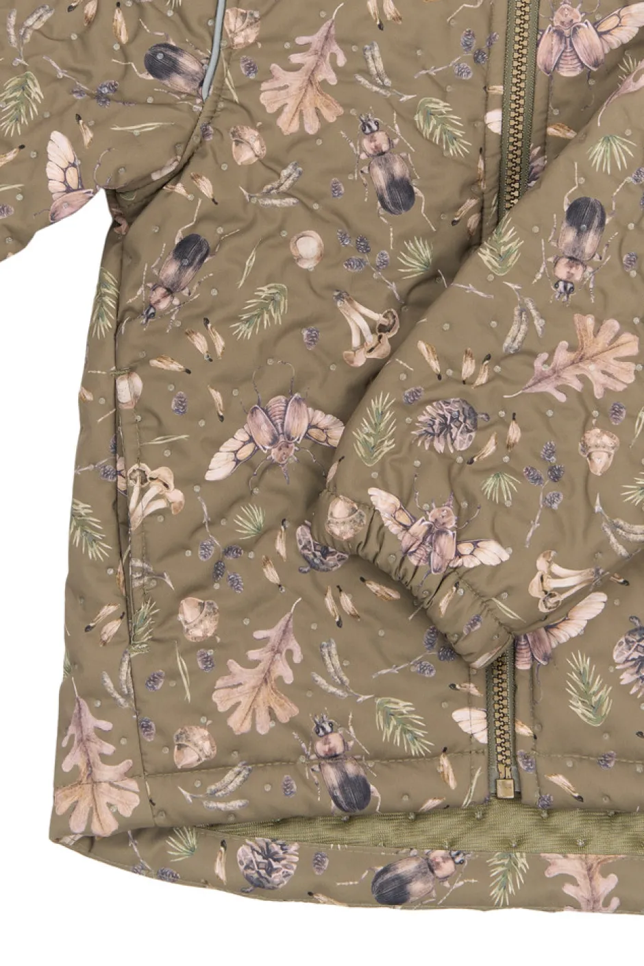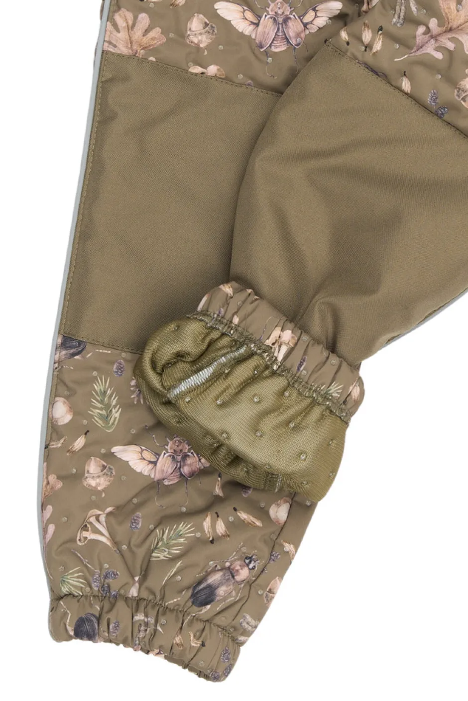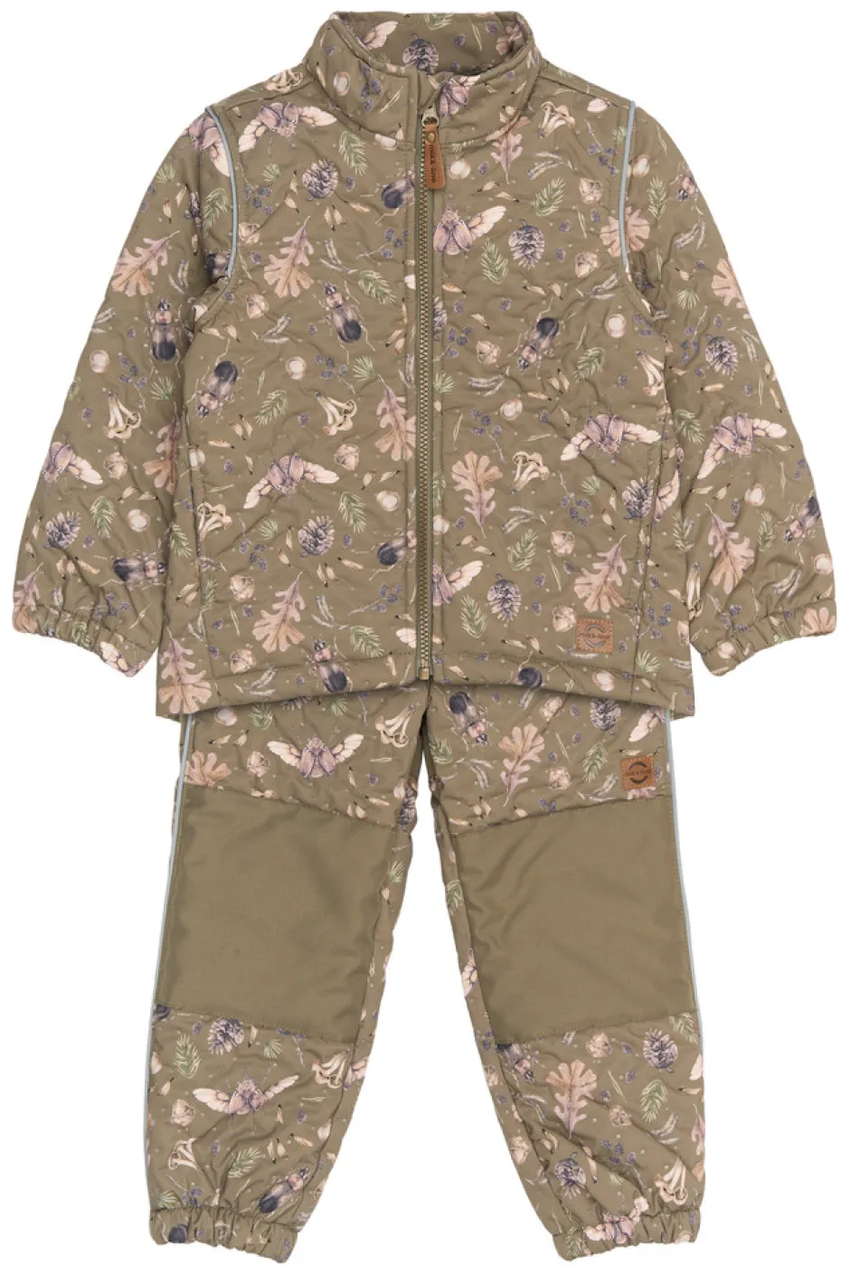Thermal+ sæt fra mikk-line med et charmerende printmønster (AOP). Dette isolerende termosæt har vandtæt stof, der er imprægneret med BIONIC-FINISH® ECO, som er uden PFAS/flourstoffer. Sømmene er dog ikke vandtætte, men åndbarheden er god. Alt i alt er det et stilfuldt og funktionelt termosæt, der vil holde pigen varm og tør, så hun kan nyde udendørseventyr imellem sæsonerne med omskifteligt, køligt og fugtigt vejr. Sættet har også et indvendigt navneskilt med plads til mere end ét navn, så giv det gerne videre så endnu et barn kan få glæde af det.