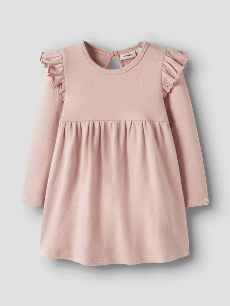 Forny dit barns garderobe med smukke og seje kjoler, der er perfekte til enhver sæson og lejlighed.Jersey er et let og elastisk stof med en blød overflade og inderside, der giver en behagelig fornemmelse og bevægelsesfrihed. – Produkttype: Kjole – Halsudskæring: Rund halsudskæring – Ærmer: Lange ærmer (L/S) – Lukning: Knap og løkke – Ekstra detaljer: Mærke, flæser – Pasform: Normal pasform