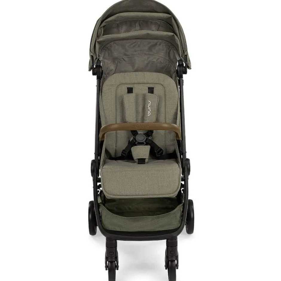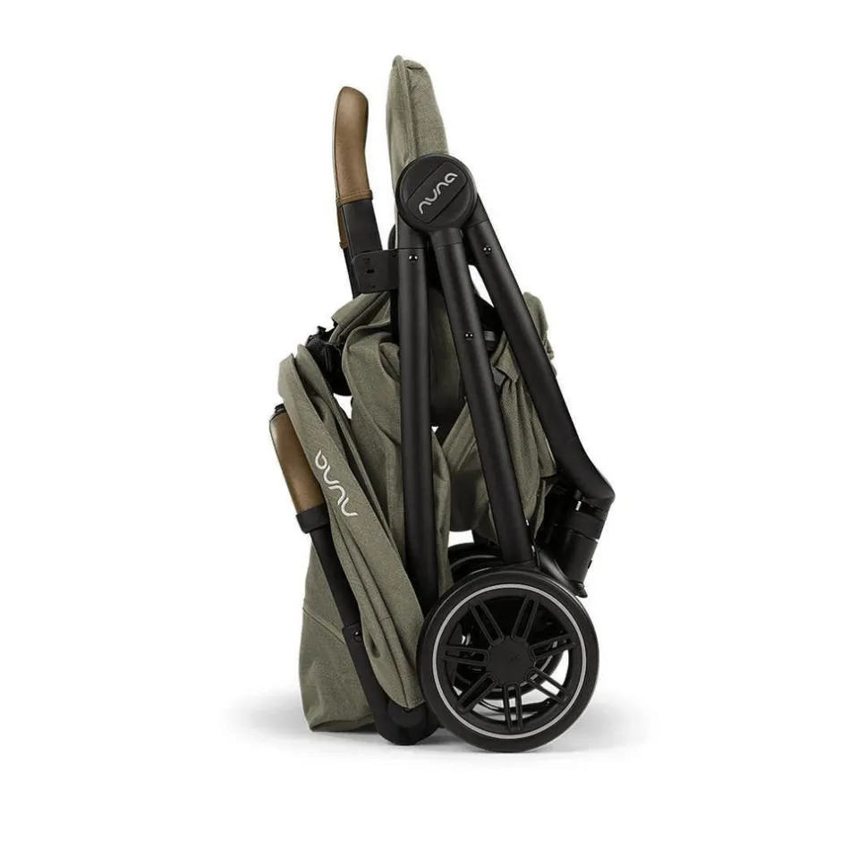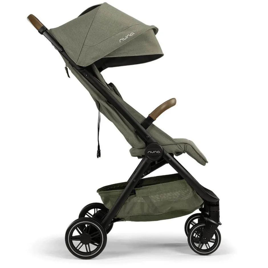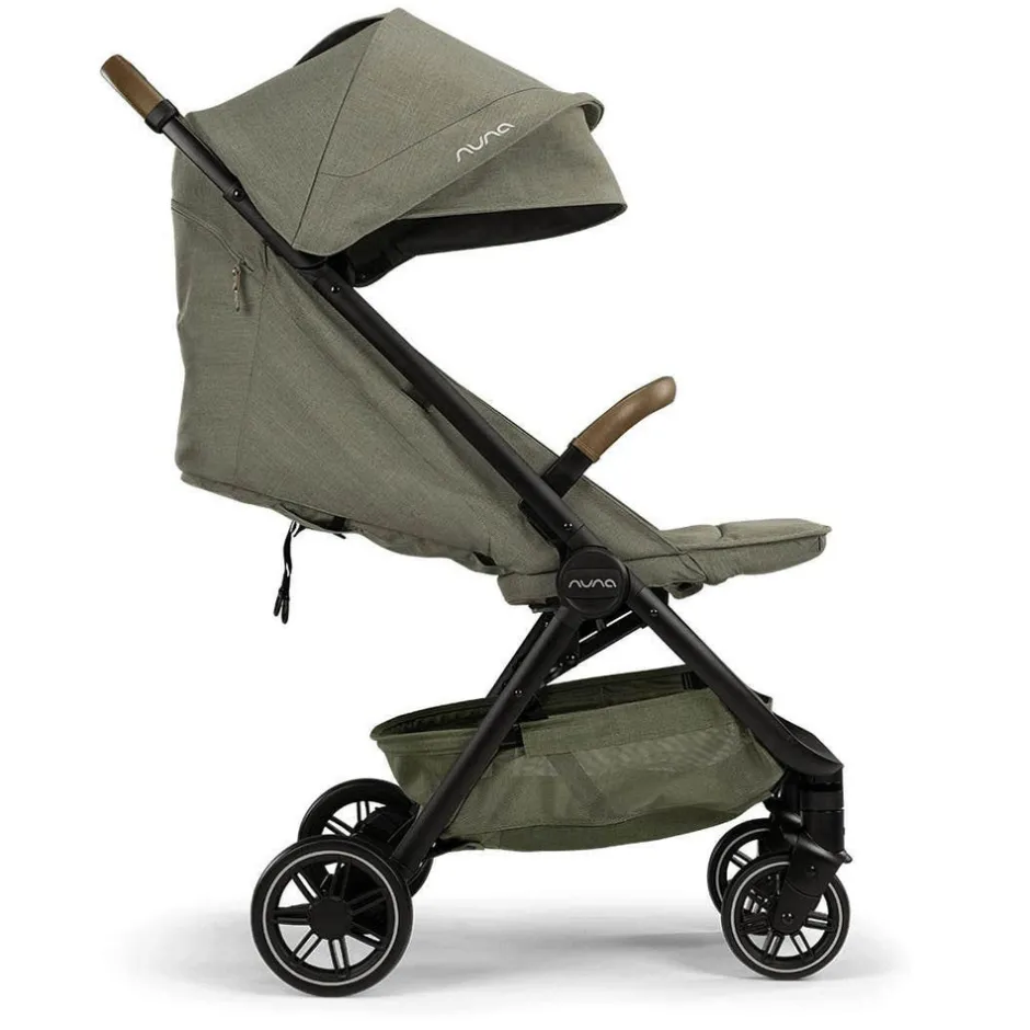 Luksus funktioner til by og rejser møder letvægts bekvemmelighed i denne fuldt udstyret og lækker designet klapvogn – TRVL fra Nuna. Sædet er trods det smalle udsende rummeligt, og med god plads til barnet. En integreret 5-punktsele sørger for barnet er spændt sikkert fast, og med MagneTech Secure Snap™ er det nemt at anvende selen da det er et magnetisk spænde der automatisk låses på plads. Ryggen kan justeres i trinløse position via snoretræk bagpå, og med fodstøtten der kan indstilles, er det nemt at finde en behagelig side-hvile-sove position til barnet. Kalechen har en ekstra solskygge som “vippes” frem for at give mere skygge til barnet, og med et peek-a-boo vindue kan man nemt holde kontakten til barnet. Sædet er i højere position end andre klapvogne, hvilket er en fordel hvis man f.eks. er på cafe/restaurant besøg, så kan barnet blot blive siddende i klapvognen, plus du får lettere tilgang til varekurven. Forhjulene på TRVL er drejbare, men kan låses hvis der er behov for det evt. på det lidt mere ujævne underlag. Når TRVL skal foldes sammen er det så nemt som at blinke med øjnene – blot med et tryk og lille skub på knappen ved styret så er den foldet sammen. Udover det er meget nemt at folde den så fylder den også ganske lidt, og er derfor nem at have med i bil, på rejsen, eller bare til opbevaring i hjemmet.