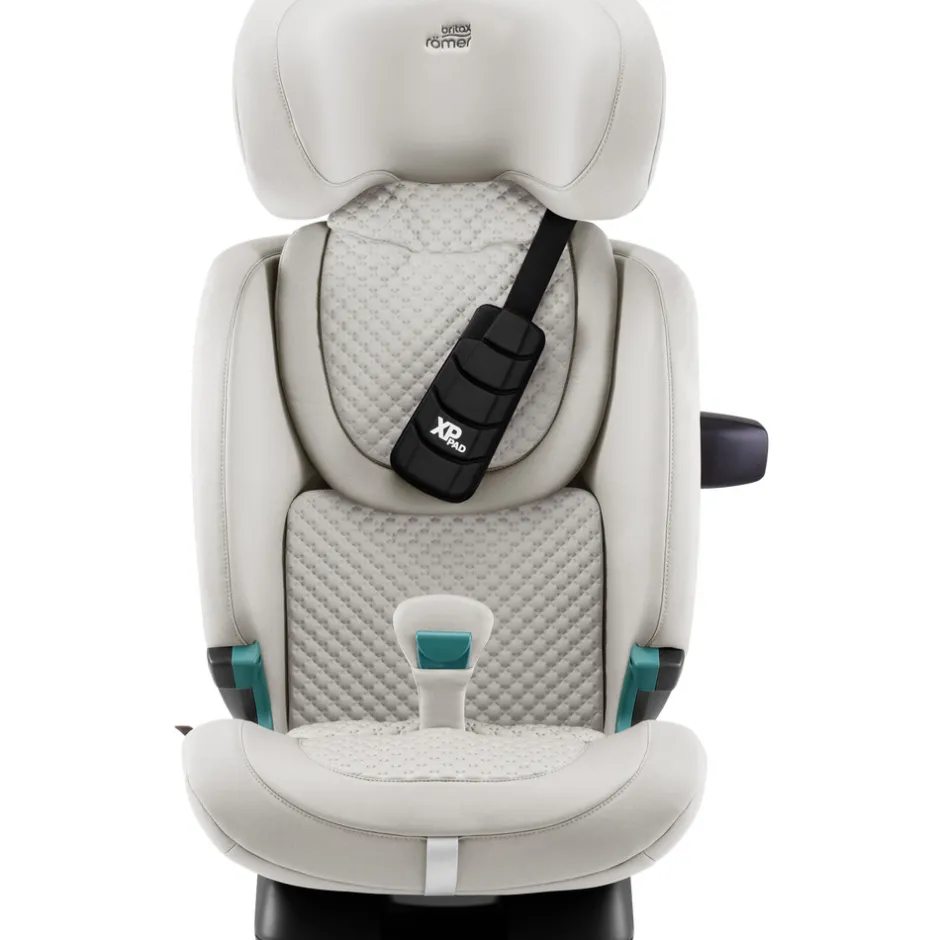 - Autostolen beskytter dit barns nakke ved en frontal kollision med den stødabsorberende XP-Pad i skum. I en ulykke reducerer den en brat fremadrettet hovedbevægelse med op til 30%* og forhindrer, at dit barns hage rammer brystet.