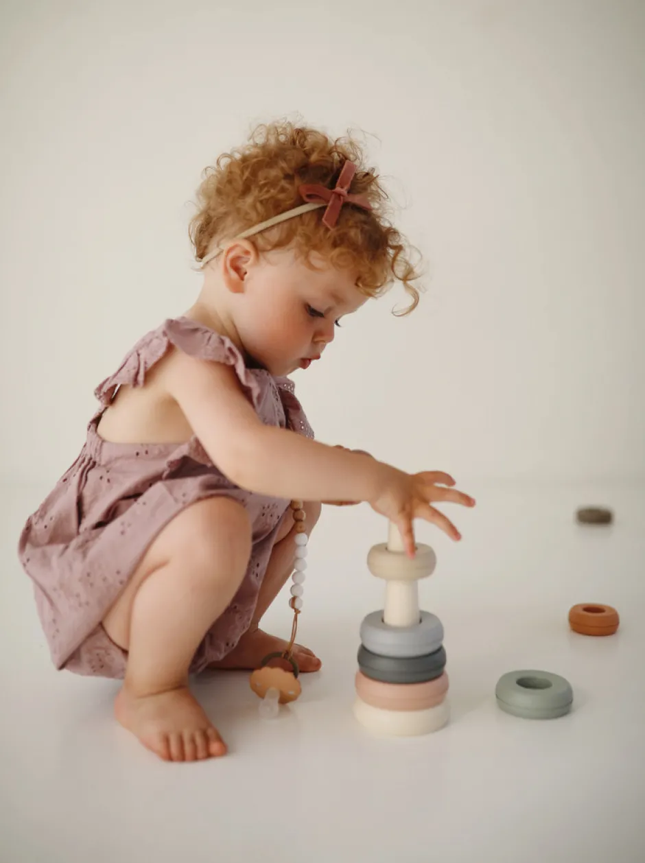 Mushies ringtårn kommer i skønne, afstemte farveskalaer, der passer perfekt til Mushies andre produkter.