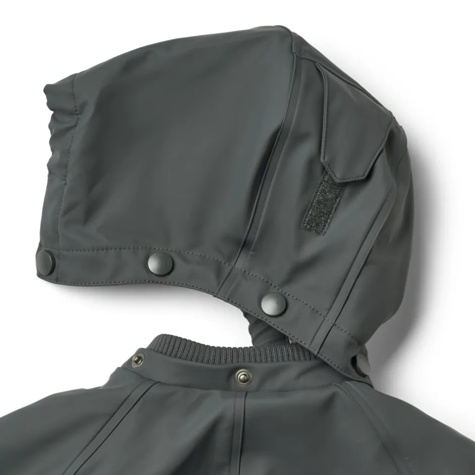 Uundværlig termo regndragt i åndbart- og vandtæt materiale til din baby. Wheat’s populære termo regndragt er en sand vinder i dit barns garderobe. Dragten er lige, hvad dit barn har brug for som overgangsdragt, når sæsonerne skifter. Dragten er i åndbart polyurethan (PU) materiale og er unik, da den holder dit barn både tørt og varmt. Den har mange praktiske detaljer såsom aftagelig og justerbar hætte, ribkrave og aftagelige gummi fodstropper.