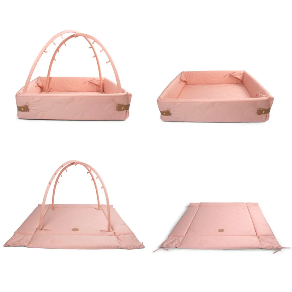Aktivitetsnesten er udviklet til at vokse med barnet, da den har flere funktioner. Brug den som kravlegård, aktivitetstæppe, legetæppe, babynest. Når baby er helt lille kan aktivitetsnesten med fordel bruges med siderne lukket og med aktivitetsstænger på, til at hænge legetøj i eller stængerne kan tages helt af og man har en større baby nest – evt. til tvillinger. Samtidig kan siderne foldes ned, hvis man vil sidde på tæppet sammen med den lille eller når den lille begynder at kravle rundt. Når barnet bliver større kan man bruge den som legetæppe med siderne foldet ned og uden stænger monteret.