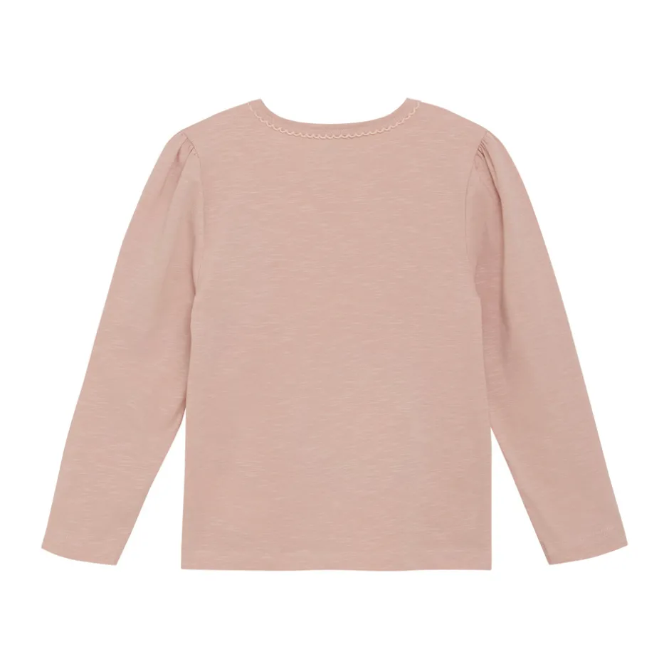 Langærmet T-shirt med et sødt frontprint og fine pufærmer, der giver et feminint og charmerende udtryk.