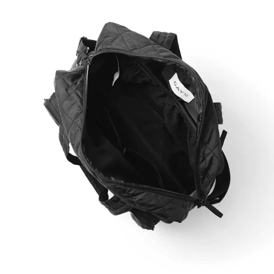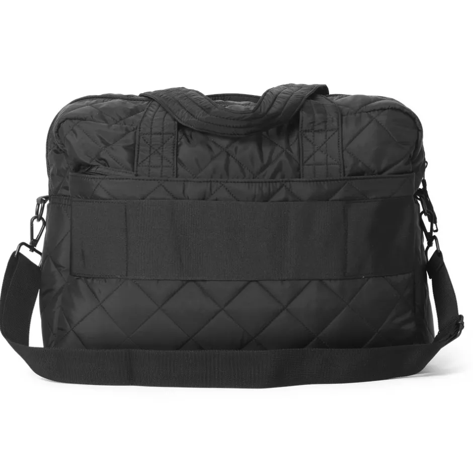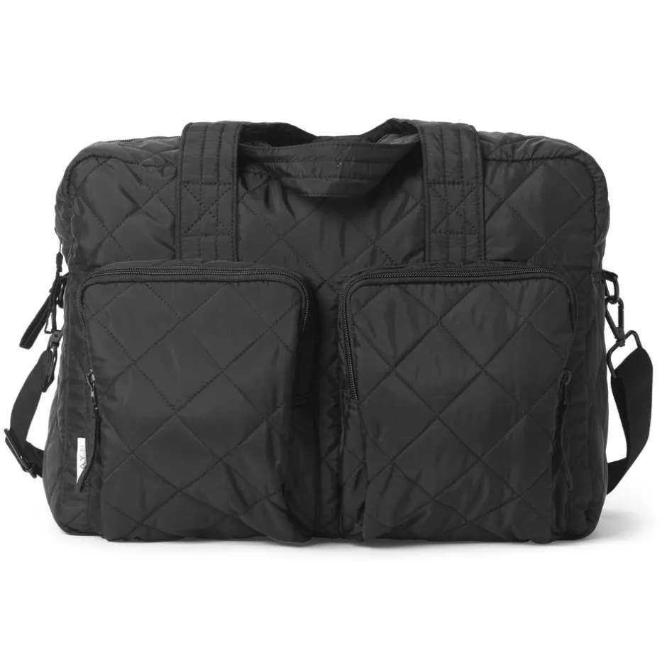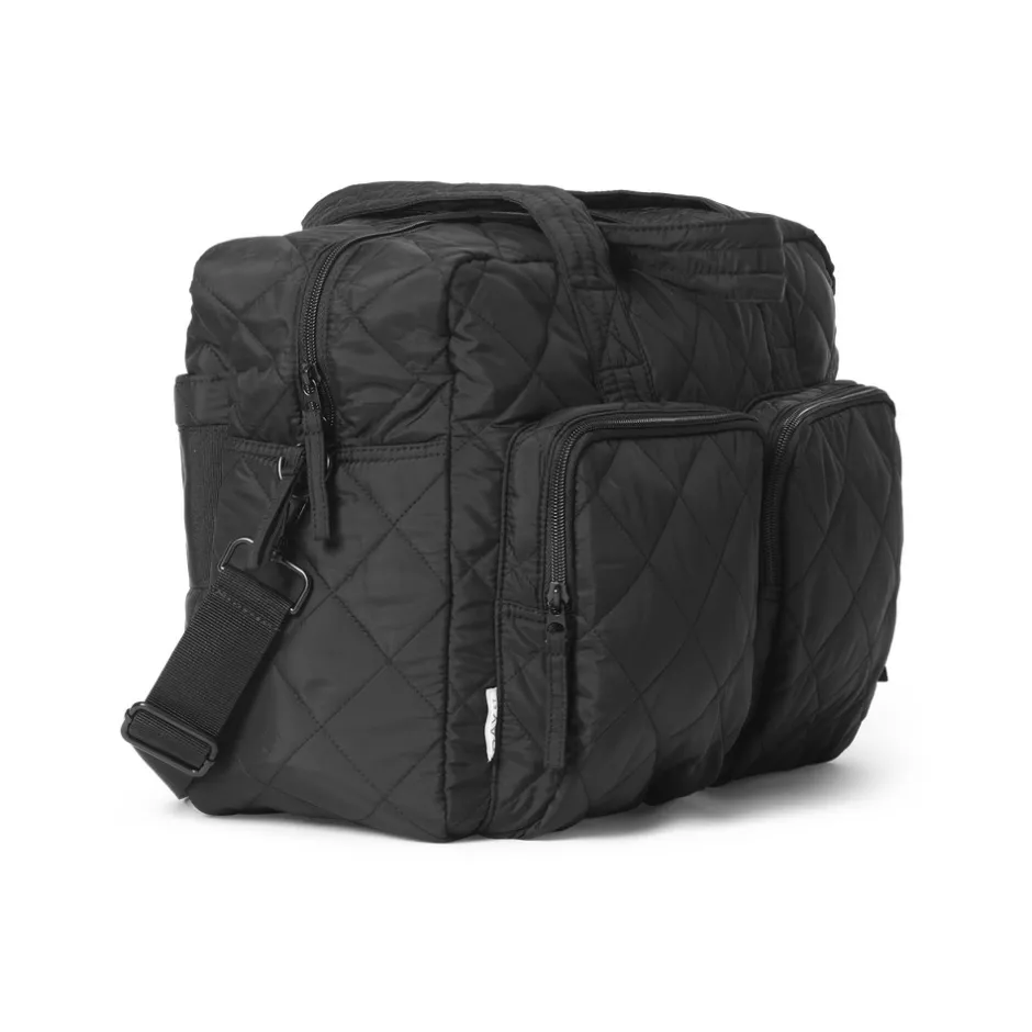 Denne rummelige pusletaske er fremstillet af 100% certificeret genanvendt materiale, både udvendigt og indvendigt. Tasken lukkes med lynlås og har flere praktiske lommer både indvendigt og udvendigt. Den er udstyret med to korte håndtag, så den kan bæres over skulderen, samt en aftagelig og justerbar strop, der gør det muligt at bære den crossbody eller hænge den over styret på en barnevogn. Bagpå har tasken en rem, så den kan fastgøres til håndtaget på en kuffert.