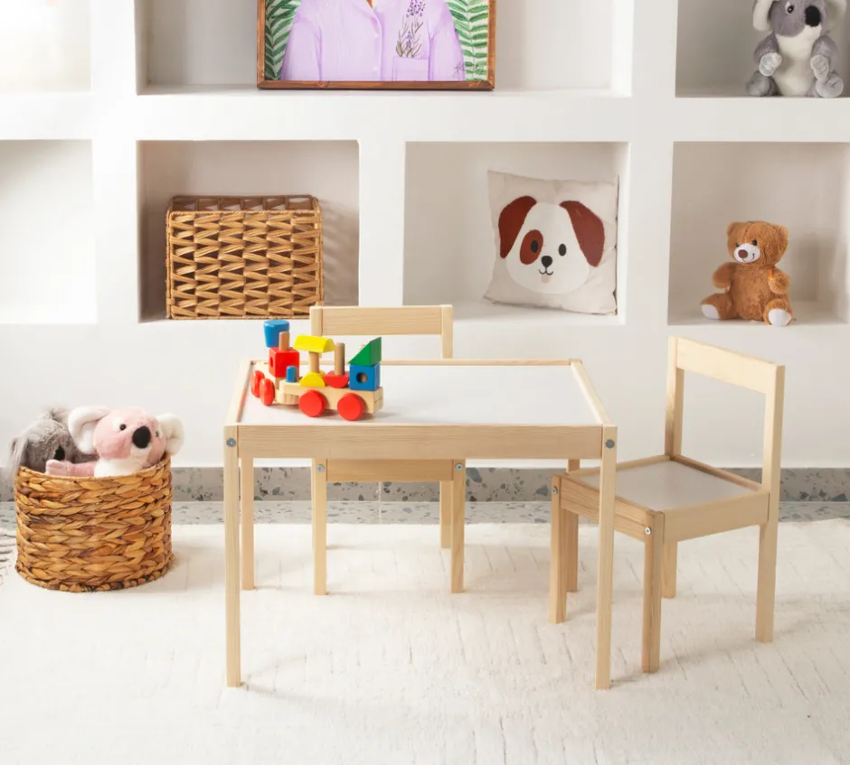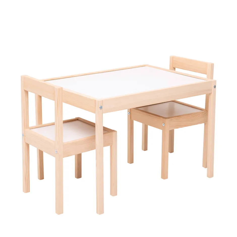 Med sin multifunktionelle brugsstruktur er Kukka Bord- og stolesæt, designet til at være dine børns bedste ven. Bord- og stolesættet kan bruges til dine børns spise-, tegne- og farveaktiviteter, puslespil, kunsthåndværk, legetid og mange flere aktiviteter. Det er et enkelt og flot produkt, der giver dit barn mulighed for at have det sjovt i mange år. Det er lavet af højkvalitets, robust og holdbart massivt hårdttræ, der ikke indeholder maling eller formaldehyd.