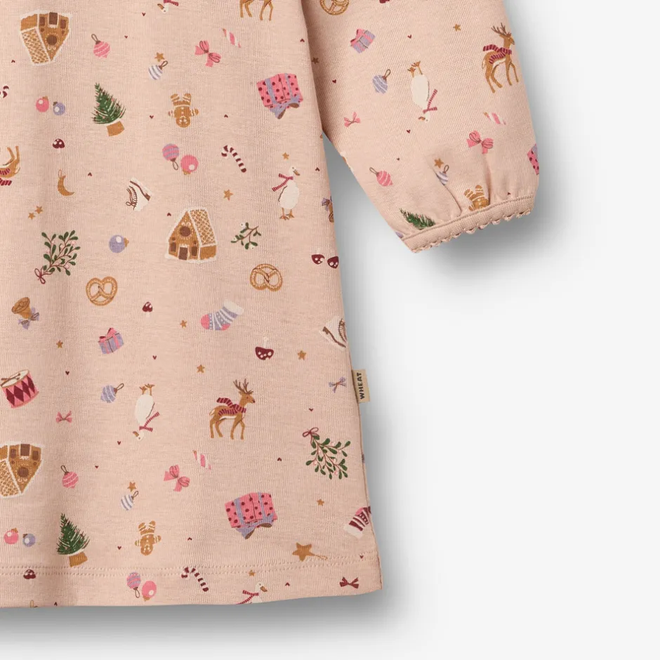 Skøn langærmet natkjole med julemotiver i økologisk bomuld til børn. Wheats charmerende natkjole med julemotiver er skabt til at sprede magisk julestemning. Med sin bløde pasform er den både let og behagelig for dit barn at have på hele dagen lang. Den fine natkjole er også perfekt til de kolde efterårs- og vinterdage i hjemmet, hvis dit barn har brug hyggetøj til film i sofaen.