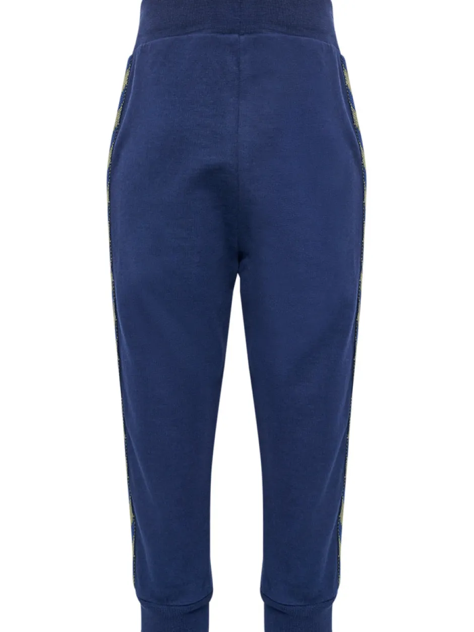 ERHAN PANTS er fremstillet af et blødt sweatstof i økologisk bomuld med en justerbar talje, så pasformen kan tilpasses perfekt til dit barn. Designet inkluderer vores karakteristiske vinkelbånd på benene og et printet logo på det ene ben.