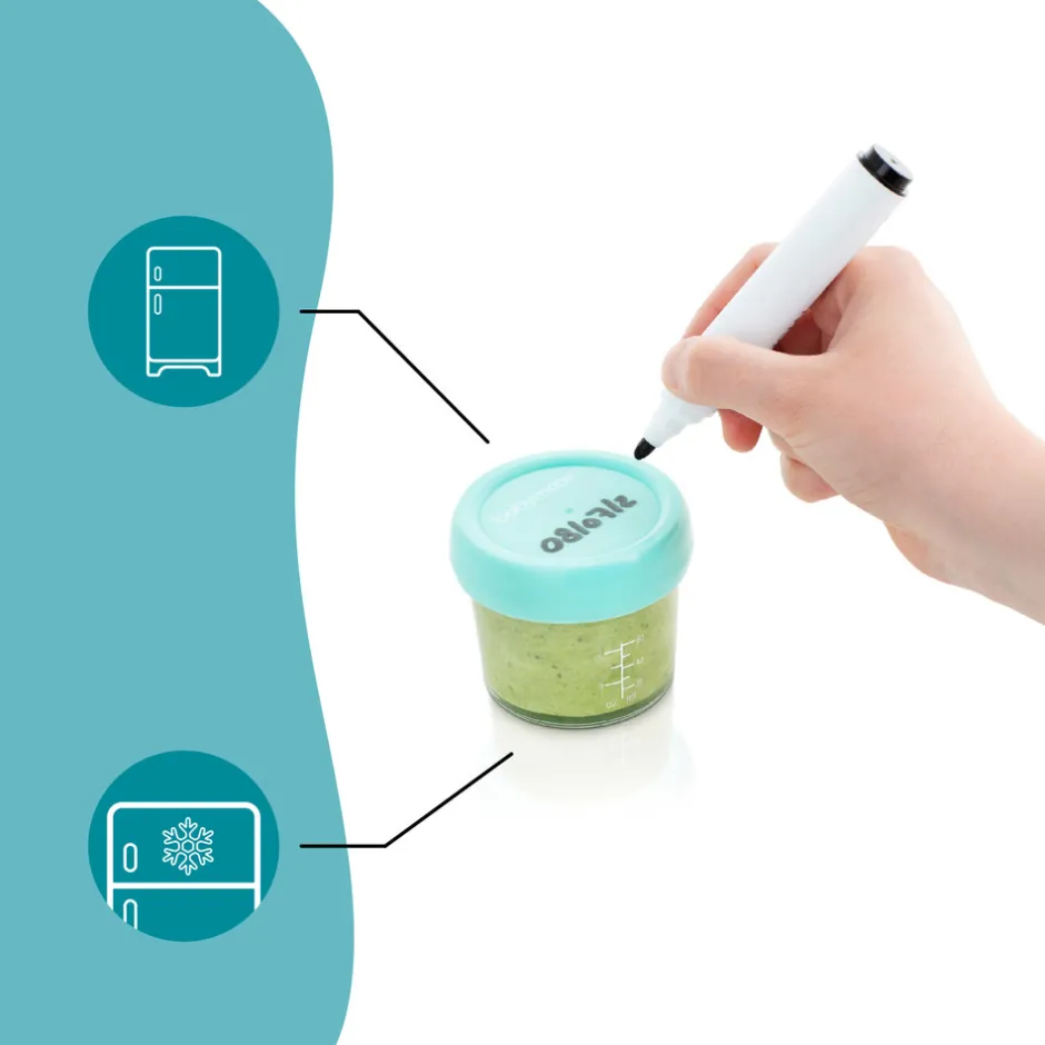 Disse opbevaringsbeholdere har en kapacitet på 220ml. De har et skruelåg med en hermetisk silikoneforsegling. Du kan uden problemer overskrive den gamle dato, som du har skrevet på låget. Glassene er stabelbare, hvilket betyder, at de nemt kan opbevares i dine skabe, køleskab eller fryser.