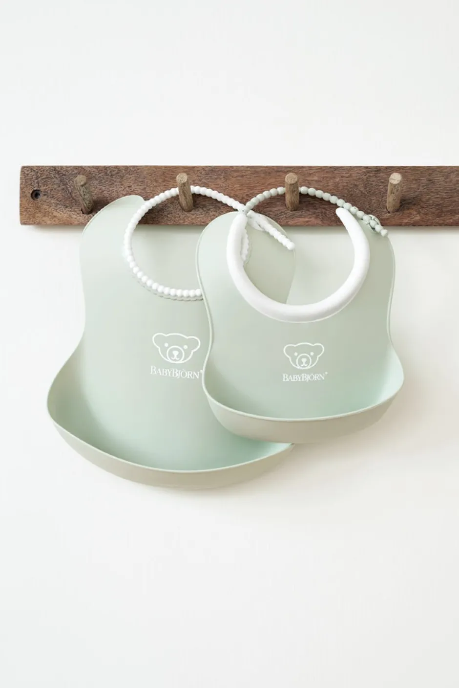 BabyBjörn blød hagesmæk er det uundværlige redskab ved spisetid. Den bløde hagesmæk er ergomnomisk designet til at passe perfekt til dit barns krop og den har en dyb lomme som fanger al den spildte mad. Snoren er designet som en perlekæde og kan tilpasses nærmest trinløst omkring dit barns hals. Den bløde hagesmæk er nem at rengøre og kan sagtens gå i opvaskemaskinen – Placer den dog i øverste hylde.
