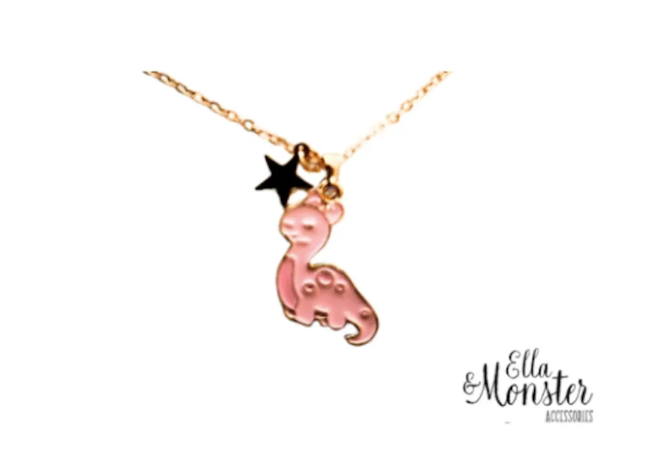 Brøl med charme! Denne søde lille dino er slet ikke farlig – kun farligt nuttet. Med sin gyldne stjerne og blide blik passer den på sin bærer, uanset om eventyret går til børnehaven eller drømmeland.