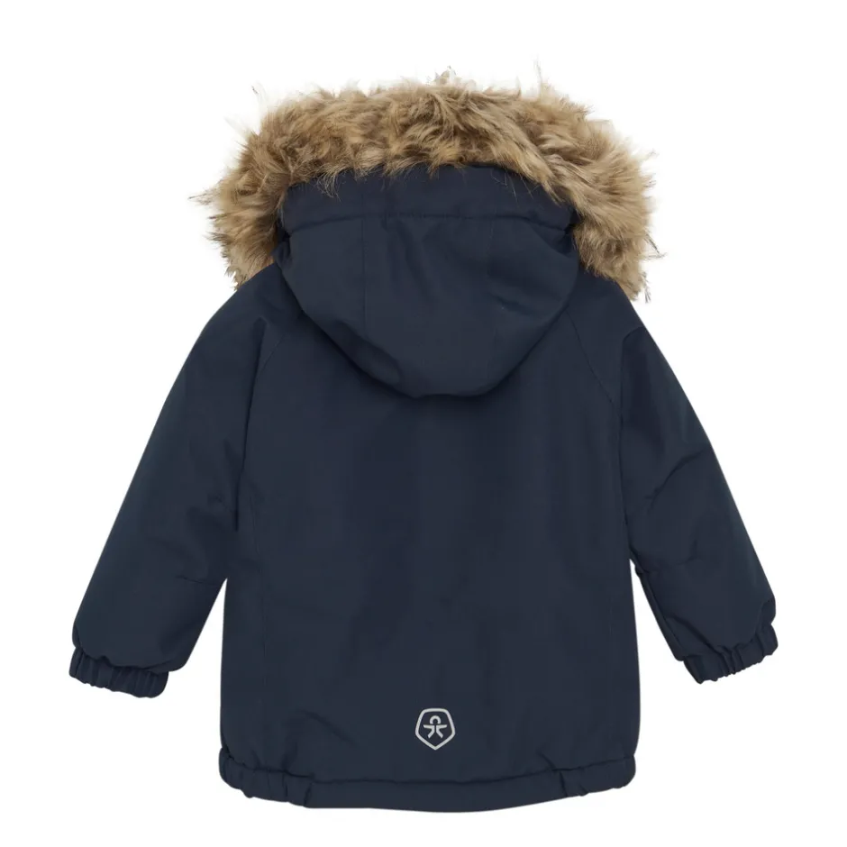 Varm parka-jakke i slidstærkt materiale – perfekt til vinterens udfordringer. Jakken er fremstillet af et robust og delvist genanvendt materiale, der er både åndbart, vind- og vandtæt. Dit barn kan derfor trygt lege ude i regn, sne og blæst uden at blive koldt eller vådt. Materialet er testet med en slidstyrke på over 60.000 rubs, har et vandsøjletryk på 10.000 mm og en åndbarhed på 2.000 g/m²/24h.