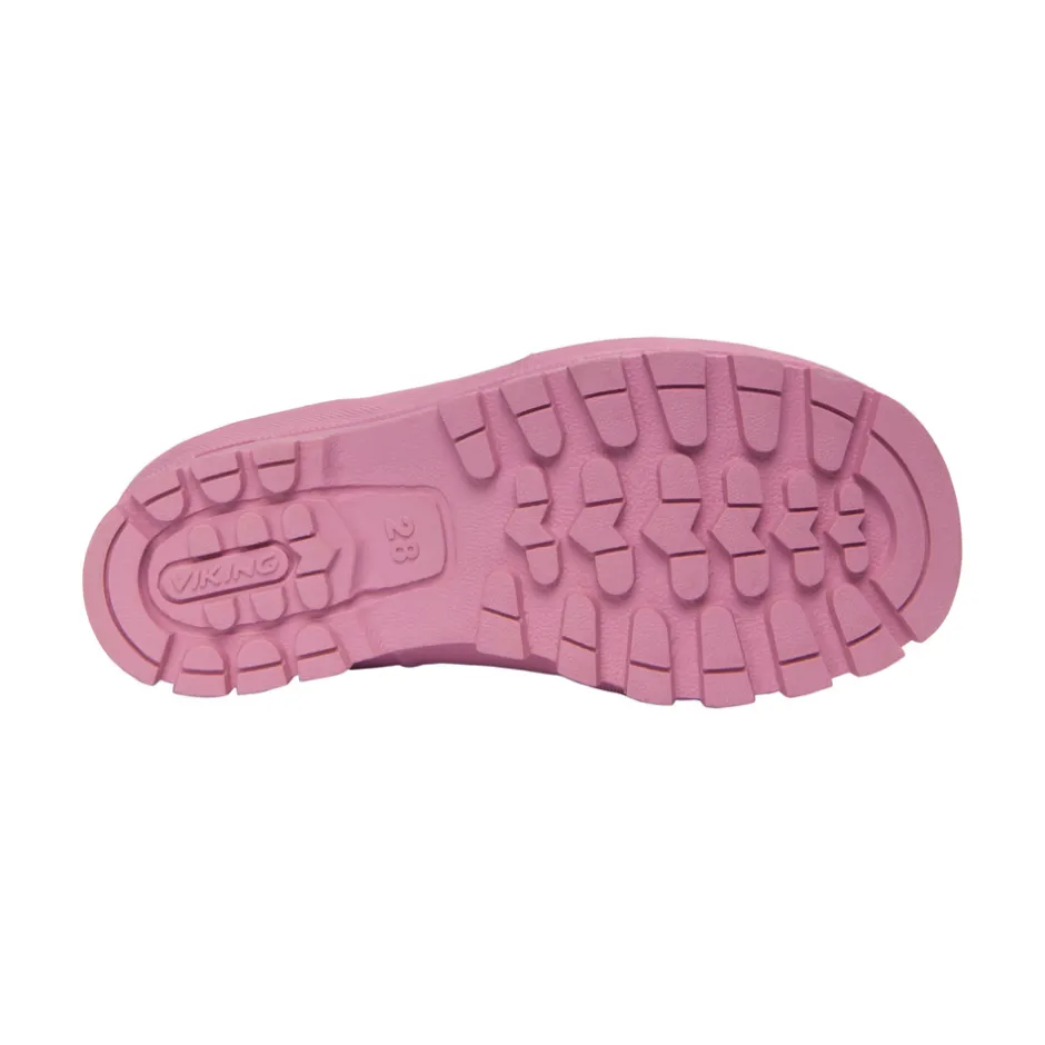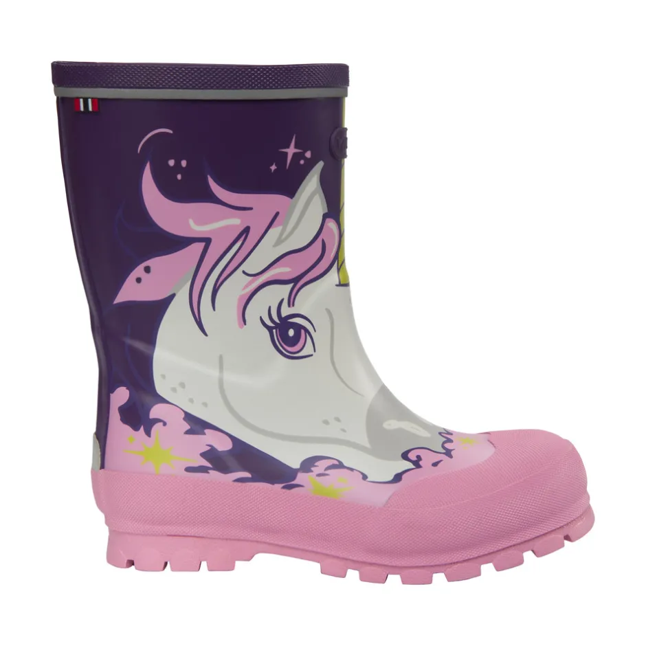 En behagelige læst giver glade fødder – hvilket giver glade børn! Jolly Print har en normal pasform, og hele støvlen er fremstillet af naturgummi, som både er elastisk, slidstærkt og vandtæt. Den har forstærket snude, og indlægssålen kan tages ud, så den nemt kan tørre. Indvendigt finder man et hurtigttørrende syntetisk tekstilfor. Alle gummistøvler fra Viking er håndlavet i naturgummi. Støvlen er desuden fri for PVC og vegansk.