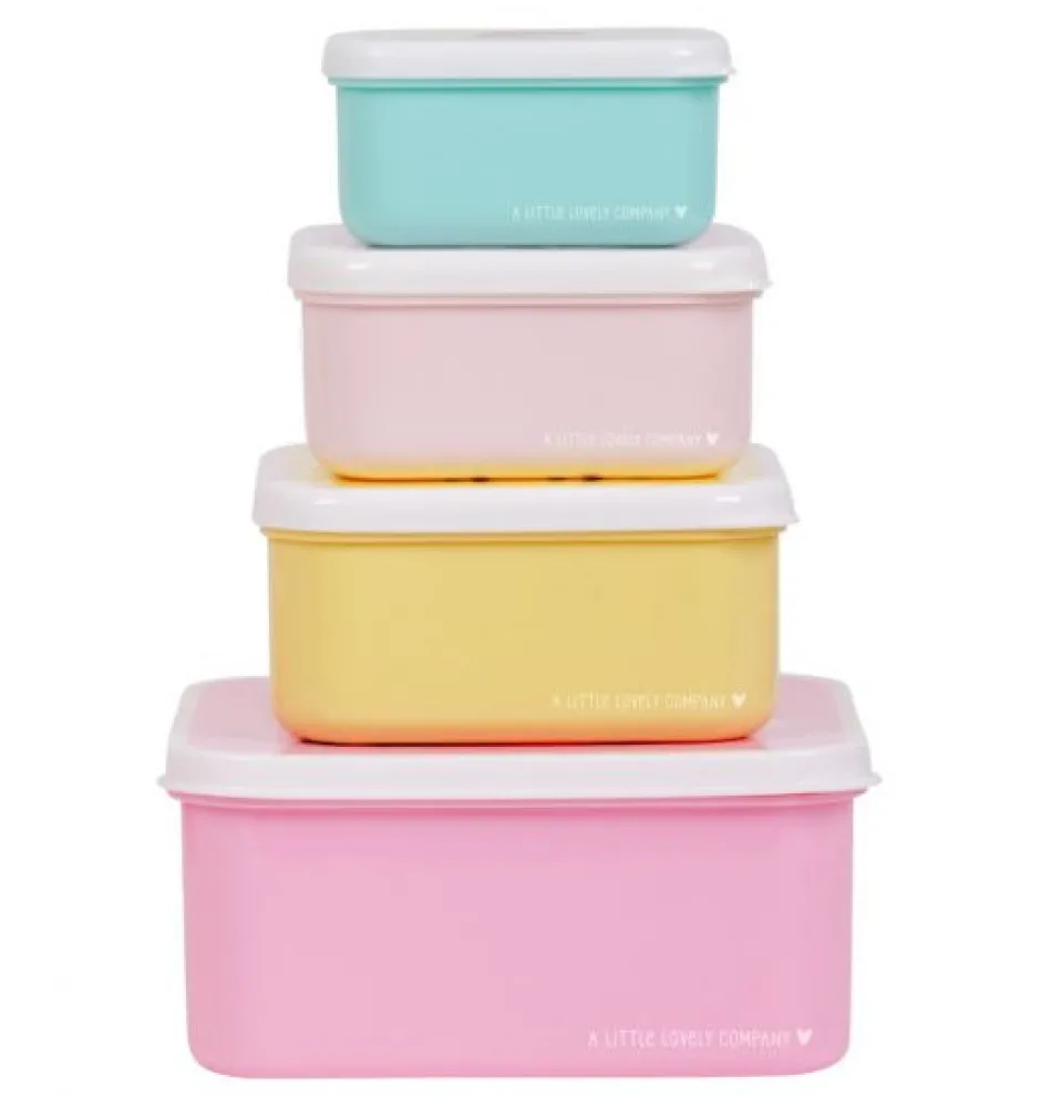 Opbevar din madpakke eller yndlingssnacks i dette smarte snackbokssæt. Frugt, grøntsager, snack, rugbrødsmadder, sandwich eller salater kan let passe ind i disse bokse. Dette dejlige frokost- og snackbokssæt inkluderer fire forskellige størrelser som gør det let at adskille de enkelte madvarer. Fantastisk til skolefrokoster og snacks på farten.