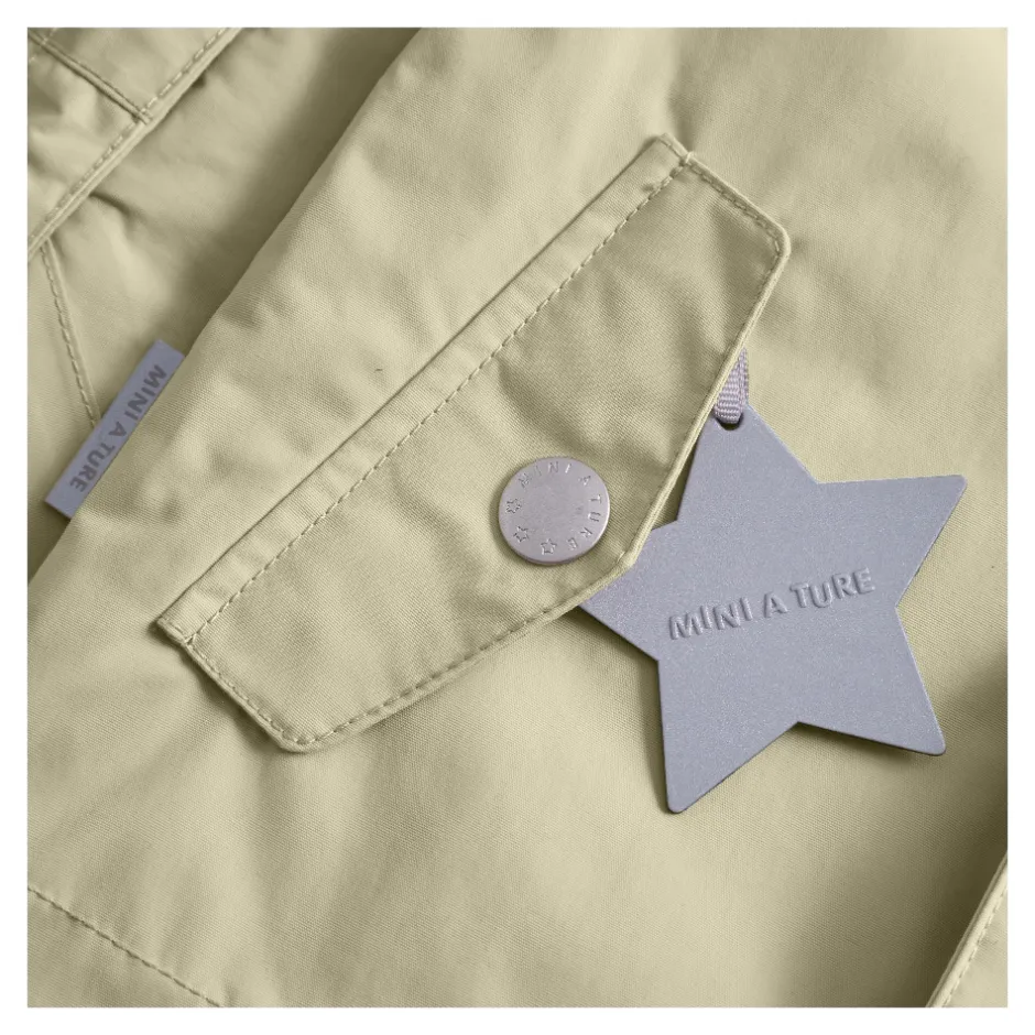 Ikonisk MINI A TURE jakke med 10 års garanti til de mindre børn. Jakken har to forlommer og centreret lynlås fortil. Den har indvendig justerbar talje, så den er nem at tilpasse det enkelte barn samt aftagelig rund hætte med trykknapper. Størrelser til og med 18m/86 har rib rundt i halsen, mens størrelserne opefter har en almindelig krave. MINI A TURE stjernerefleks findes i lommen, og jakken har et mindre reflekslogo bag på.