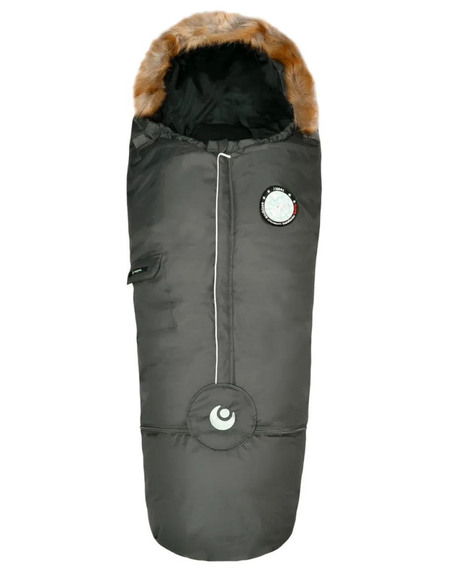 Dun, aftagelig pelskant, forlængerdel, aftagelig flonel pude, ingen gennemgående sømme, flere dunlag, som forhindrer varmetab, samtidig med at dunets og bomuldens egenskaber ventilerer godt. Køreposen er produceret efter ØkoTex 100 Klasse 1, yderstoffet er i kraftigt polyester, som tåler stor slid. Indvendigt er stoffet i økologisk bomuld. Fyldet i ryggen er Down Touch/Thermo fyld. Posen er vindtæt, har en vandsøjle på 3000 mm med Bionic Finish ECO og åndbarhed på 3000 gr/m2/24 timer.
