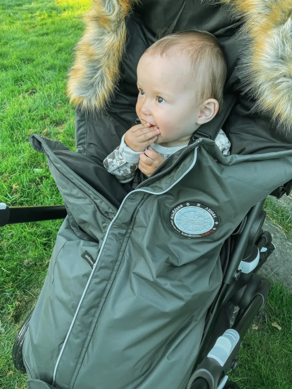 Nature køreposen har en ryg der ligner Easygrows autostolposer og har velcrolukning. Dette betyder, at Nature vil passe i alle barnevogne og med alle typer seler. Nature er en god og varm kørepose i høj kvalitet.