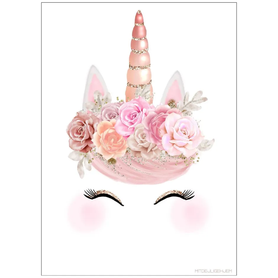 - Motiv: Enhjørning med blomster og horn