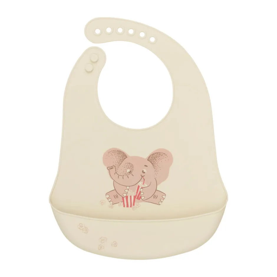 Spisesmæk i silikone. Praktisk hagesmæk der er blød og nem at bruge til baby og børn. Med praktisk opsamler der gør spisetiden nemmere.
