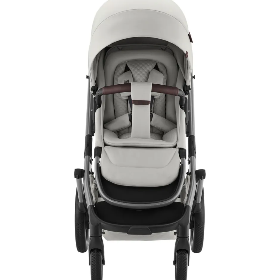 Uanset om det er en spændende tur hjem til bedsteforældrene eller en dejlig lur i parken, så sørger SMILE 5Z for den ultimative fleksibilitet. Du behøver ikke at købe en større bil – SMILE 5Z kan klappes sammen til en kompakt størrelse, og den automatiske lås holder den sammenklappet og nem at håndtere, indtil du er klar til at tage af sted igen. Og så er den fritstående, hvilket hjælper med at skabe rum, når pladsen er afgørende. Desuden forhindrer den integrerede håndtagsbeskytter grebet på håndtaget i at blive snavset til mod jorden. Gør det behageligt for dit barn ved at justere sædet til opret eller tilbagelænet position, eller til at ligge fladt, med bare en hånd. Desuden holder hele klapvognsdelens flade liggemål sammen med den justerbare fodstøtte dit barn godt beskyttet på alle sider. SMILE 5Z vokser med dit barn, så det altid har det behageligt. To fodstøtter – en på sædeenheden og en på stellet – lader dit barn hvile fødderne naturligt, så det kan koncentrere sig om at nyde det eventyr, i er ude på. Styr dig ubesværet gennem snævre passager med de drejelige forhjul eller lås dem på plads, for at gøre skovture nemmere. De afbalancerende forhjul kompenserer for et barsk terræn, så du kan udforske verden med dit barn, uanset om det er på toppede brosten eller mudrede stier.