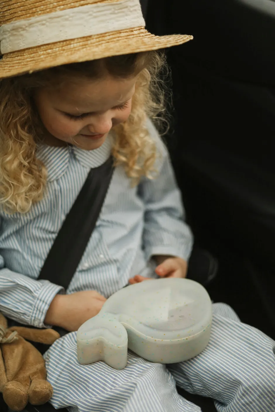 Denne charmerende snackboks har en konfetti-effekt indlejret i silikonen, hvilket gør enhver picnic til en festlig begivenhed.